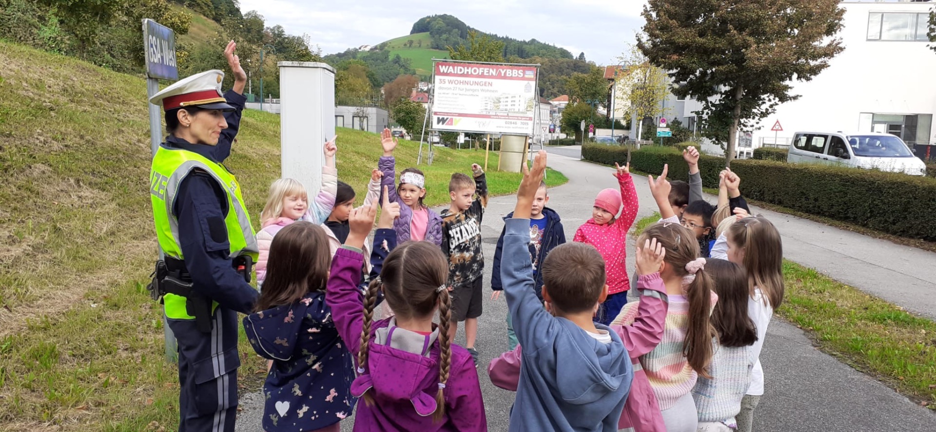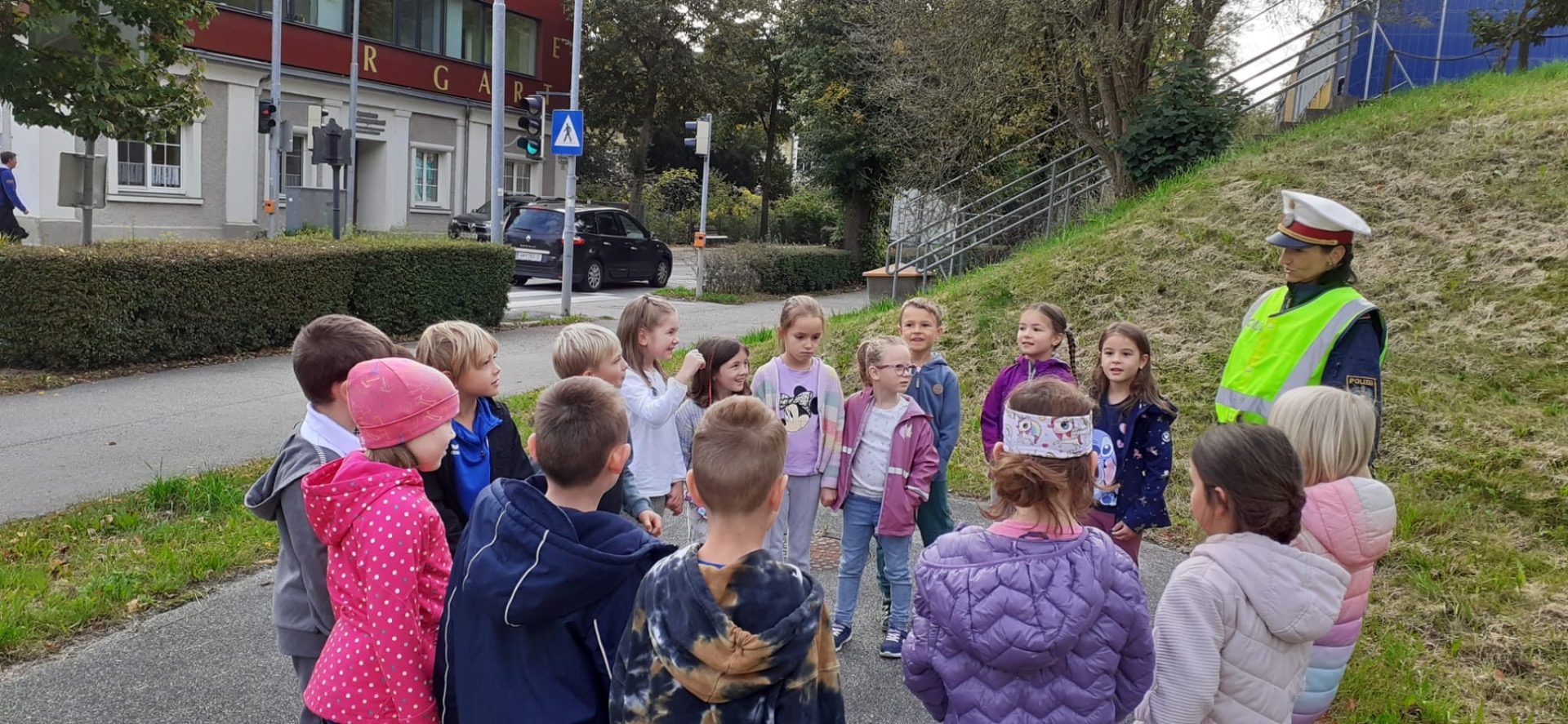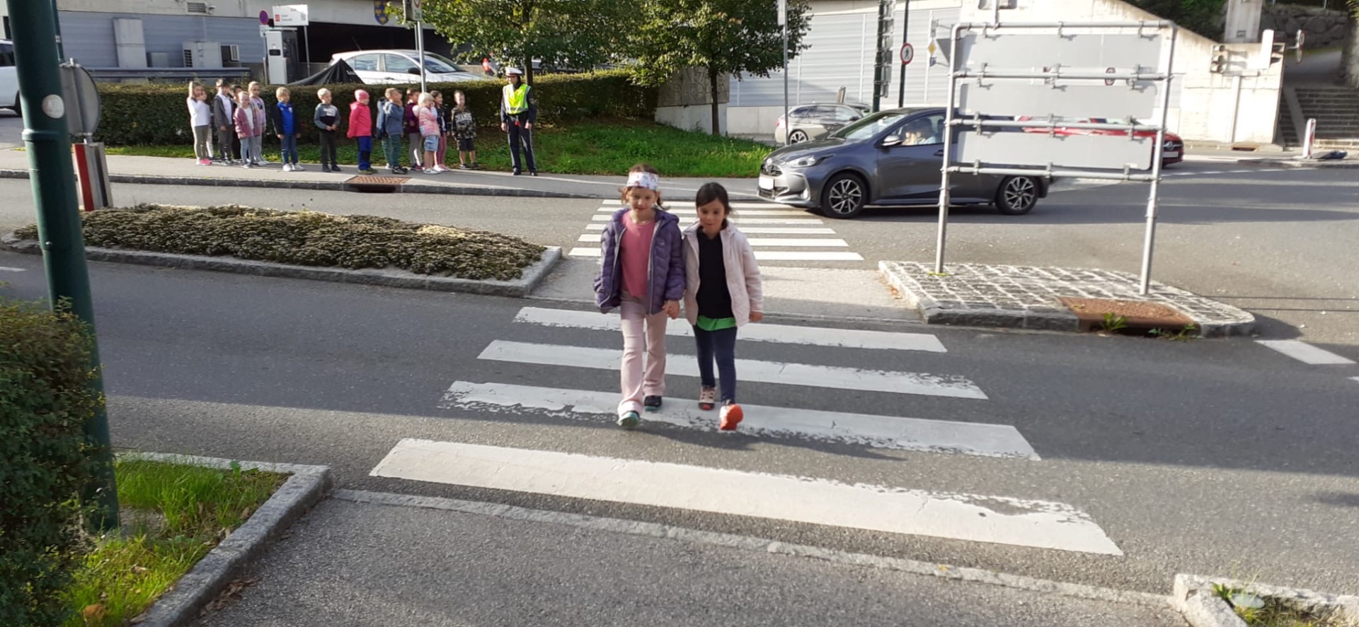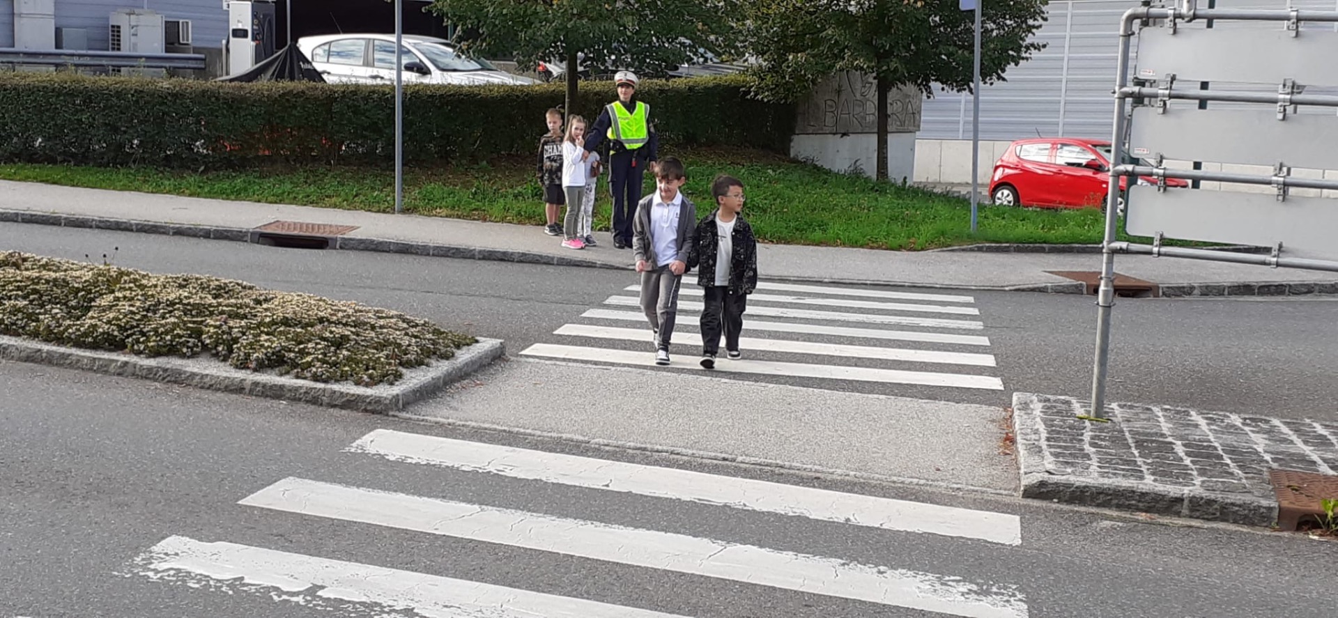 Sicher unterwegs Die Kinder der 1.a, 1.b und der Familienklasse beschäftigten sich mit dem Thema Verkehrssicherheit.