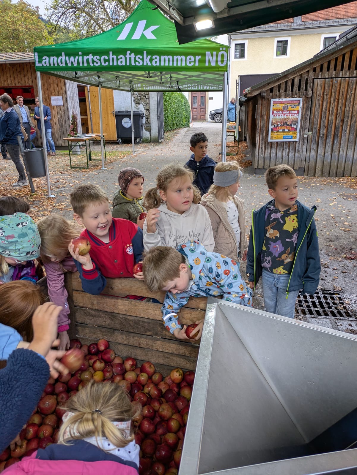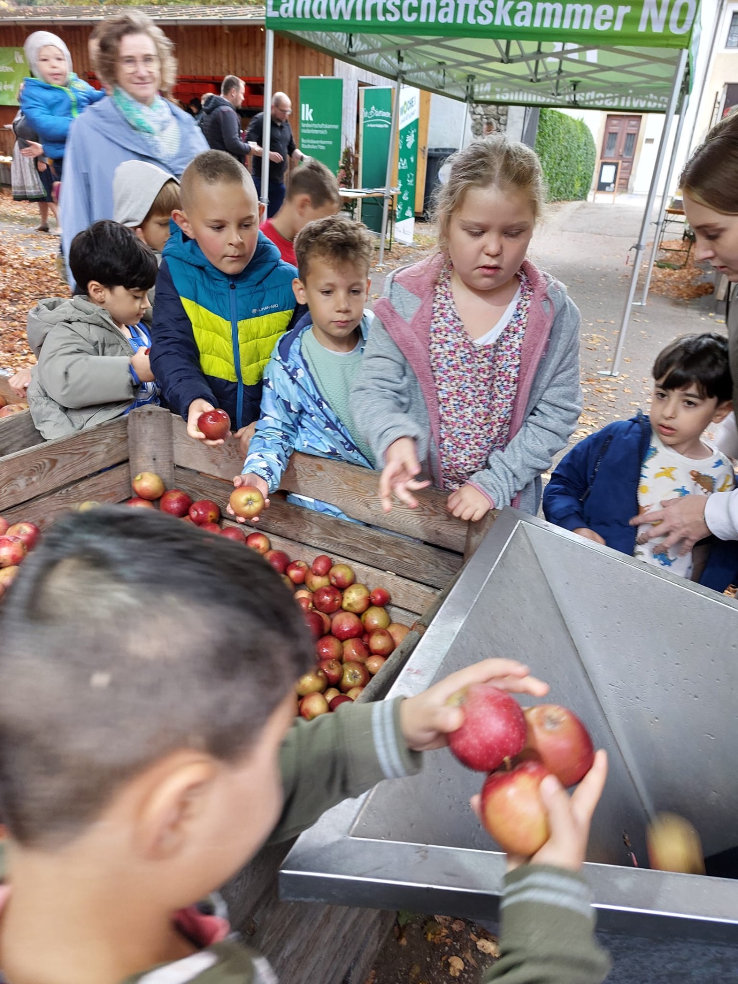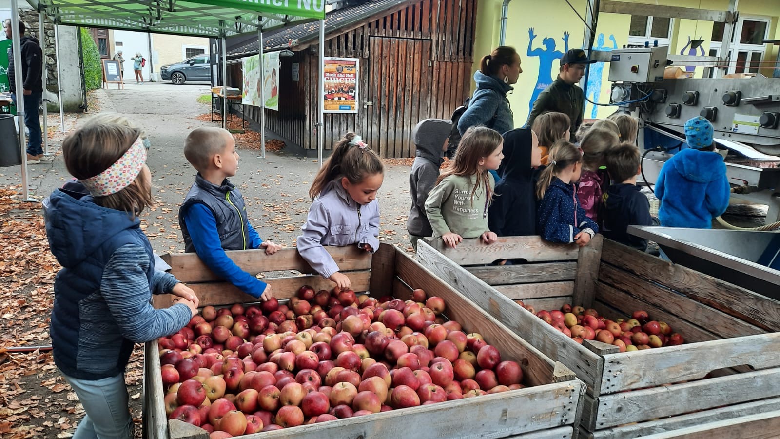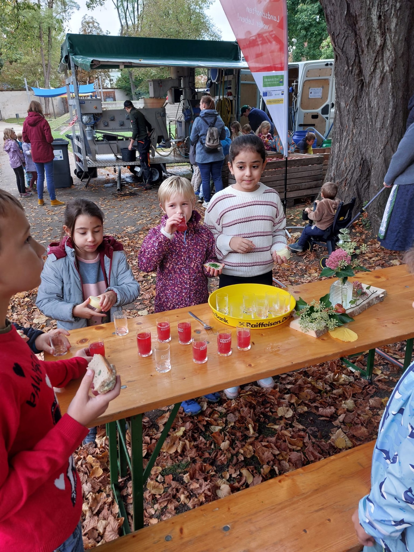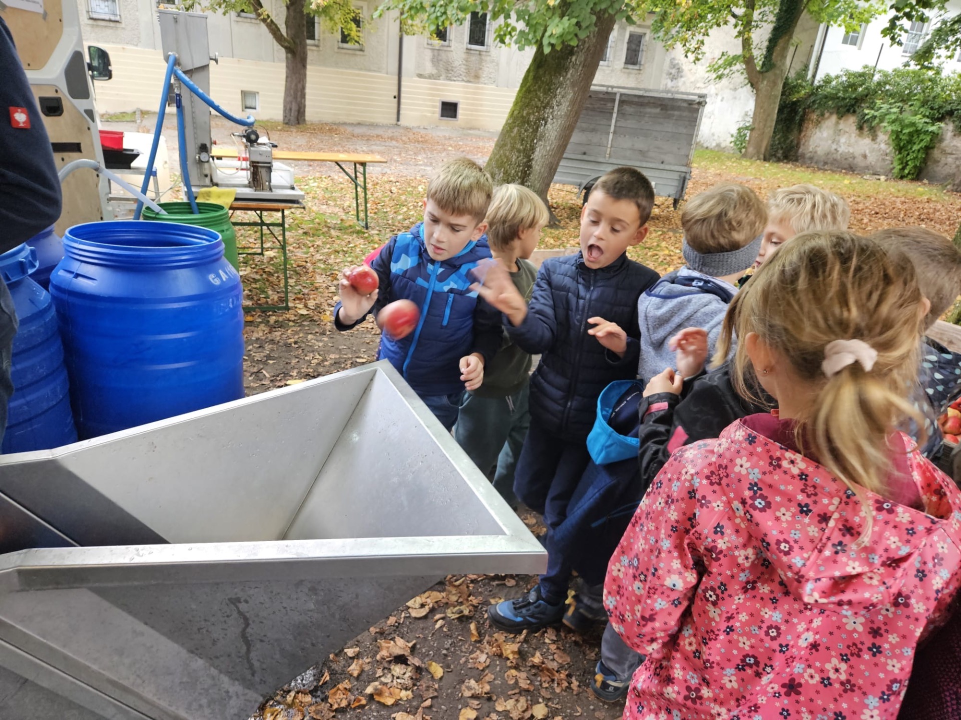 Woche der Landwirtschaft Alle Kinder unserer 1. und 2. Klassen durften im Konviktgarten Saft pressen, Butter schütteln und Leckereien verkosten.