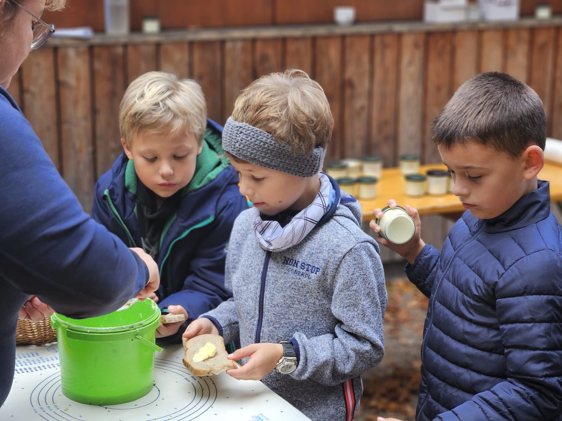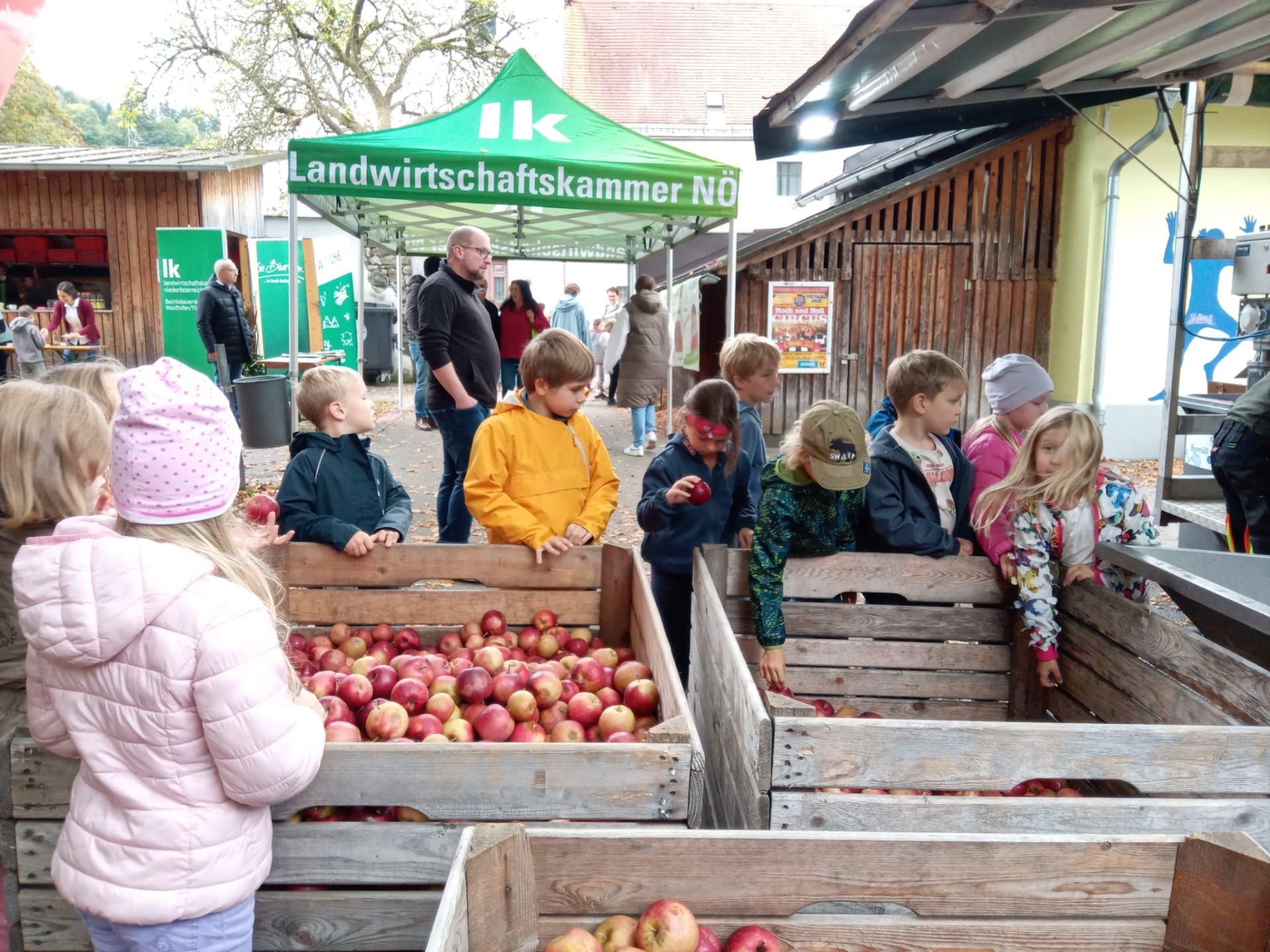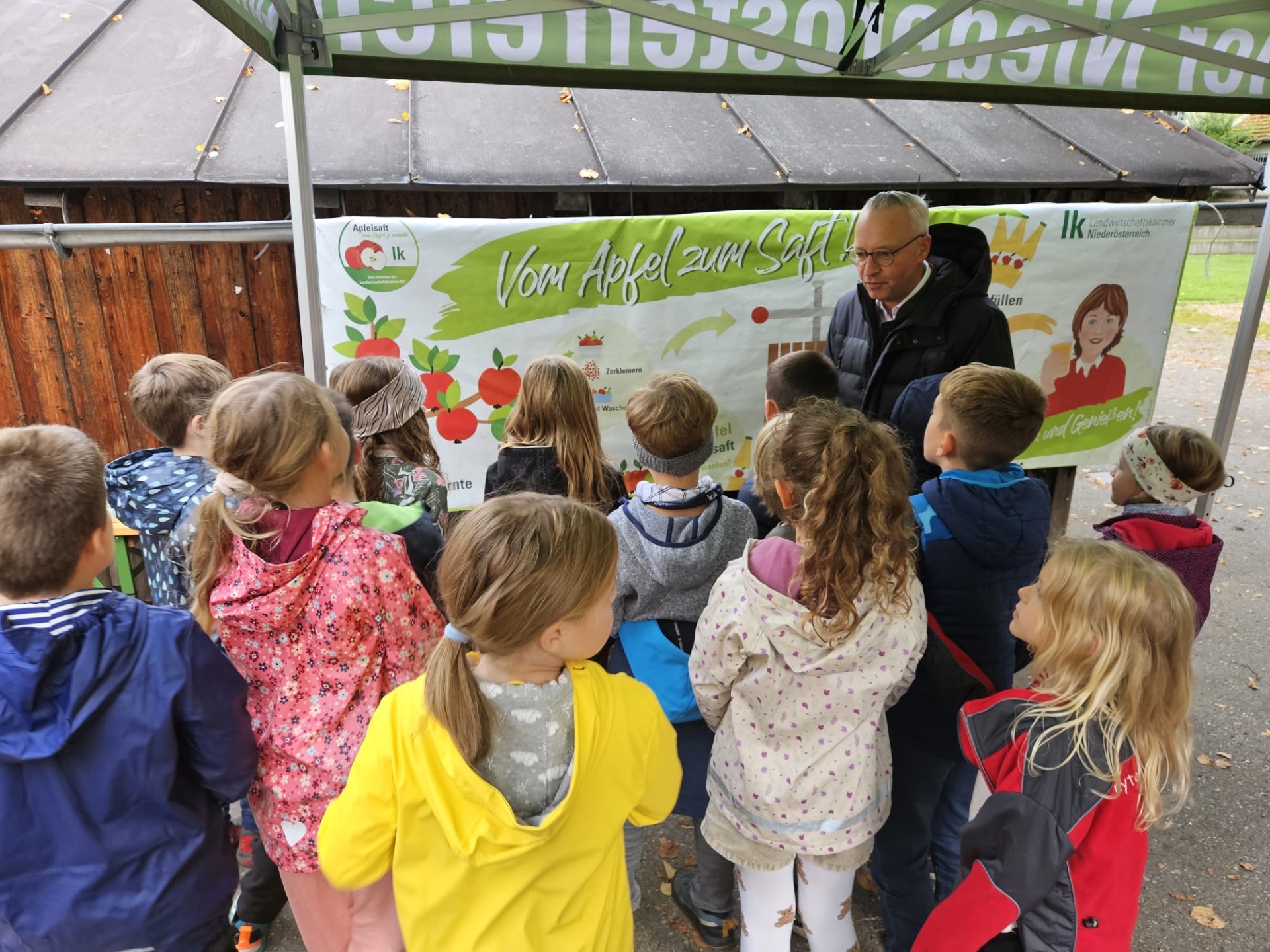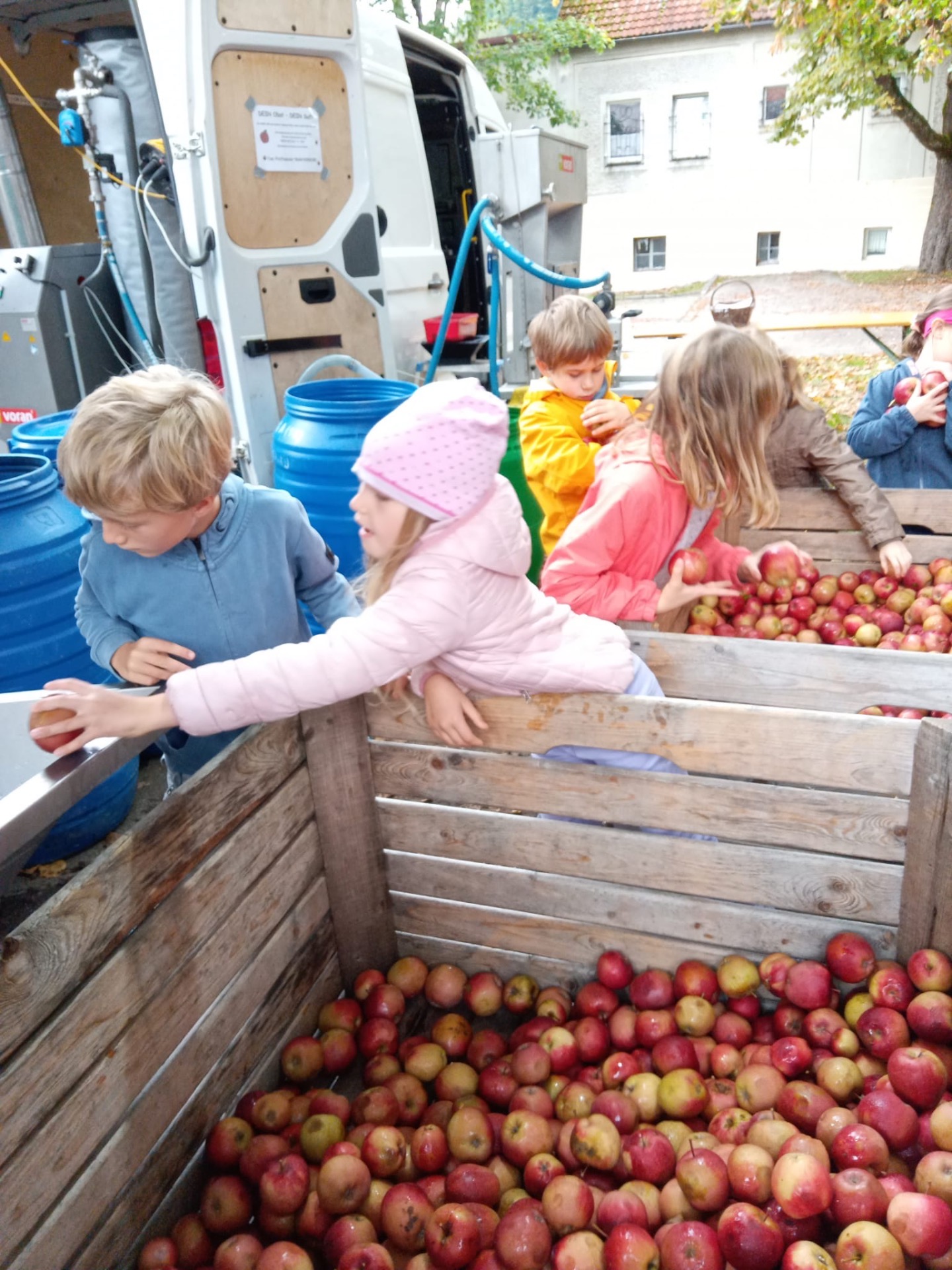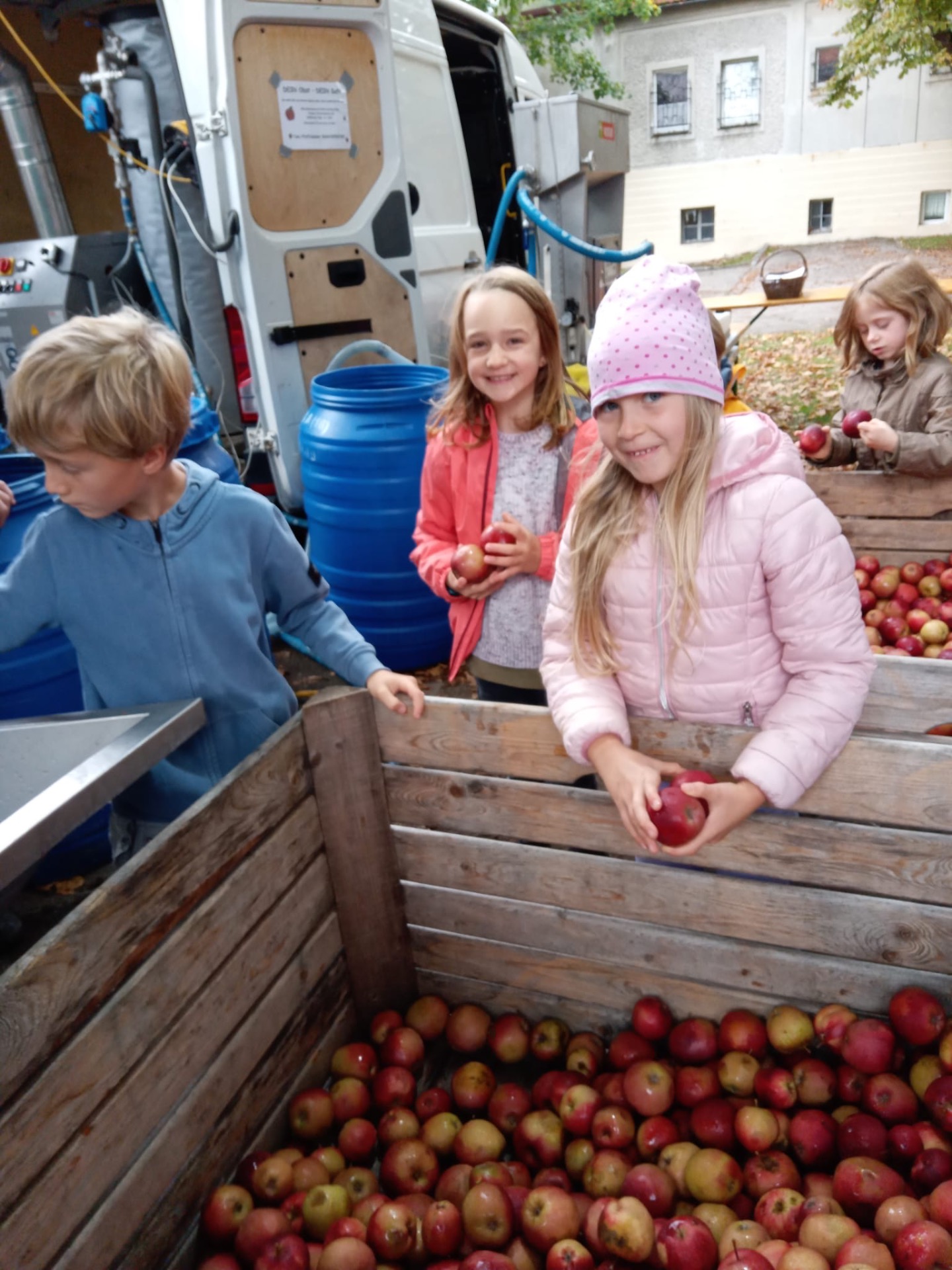 Woche der Landwirtschaft Alle Kinder unserer 1. und 2. Klassen durften im Konviktgarten Saft pressen, Butter schütteln und Leckereien verkosten.