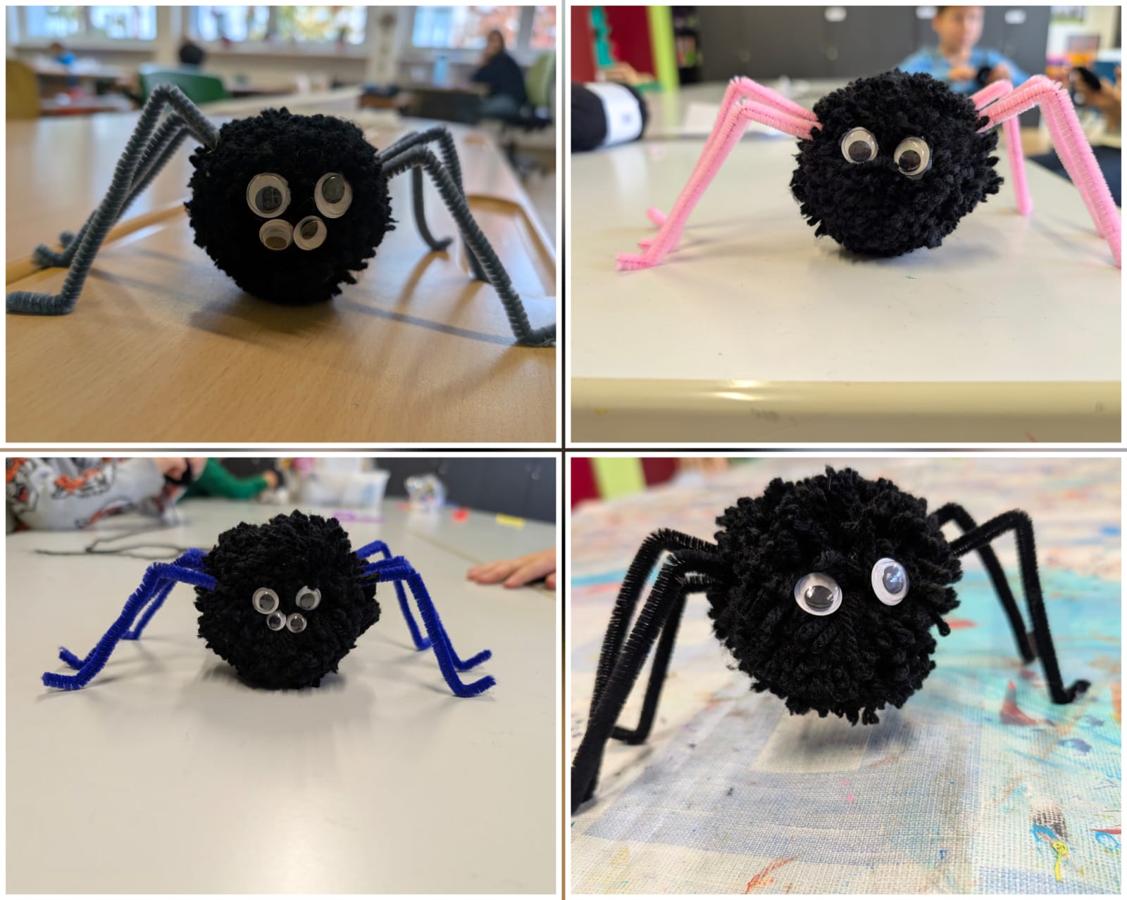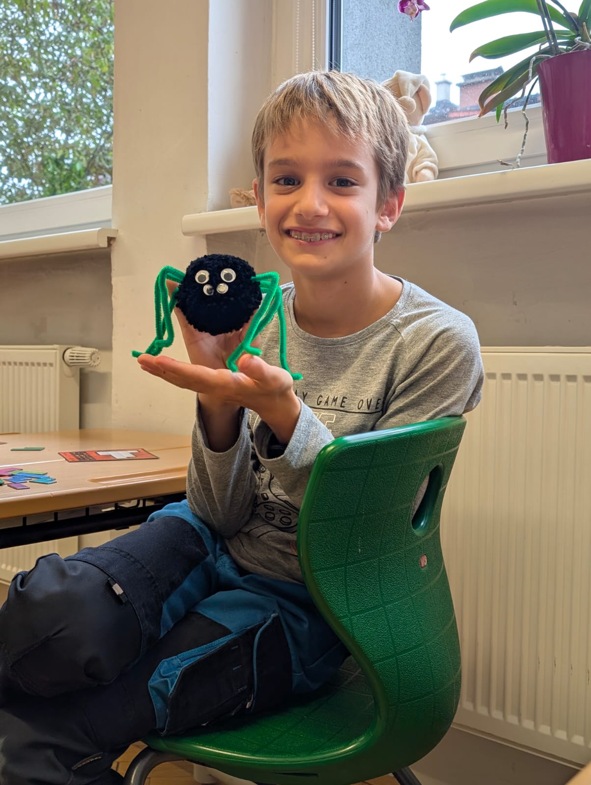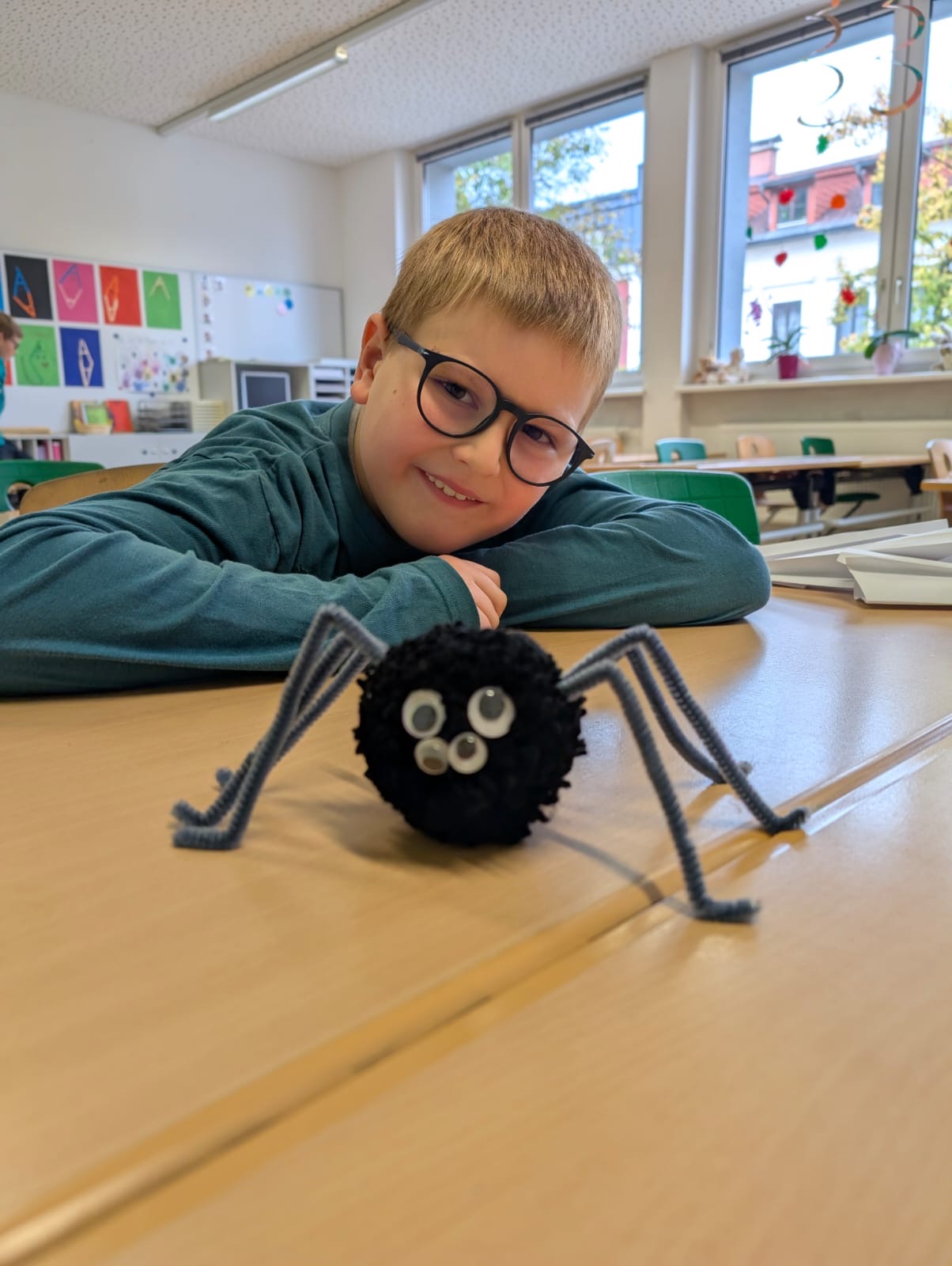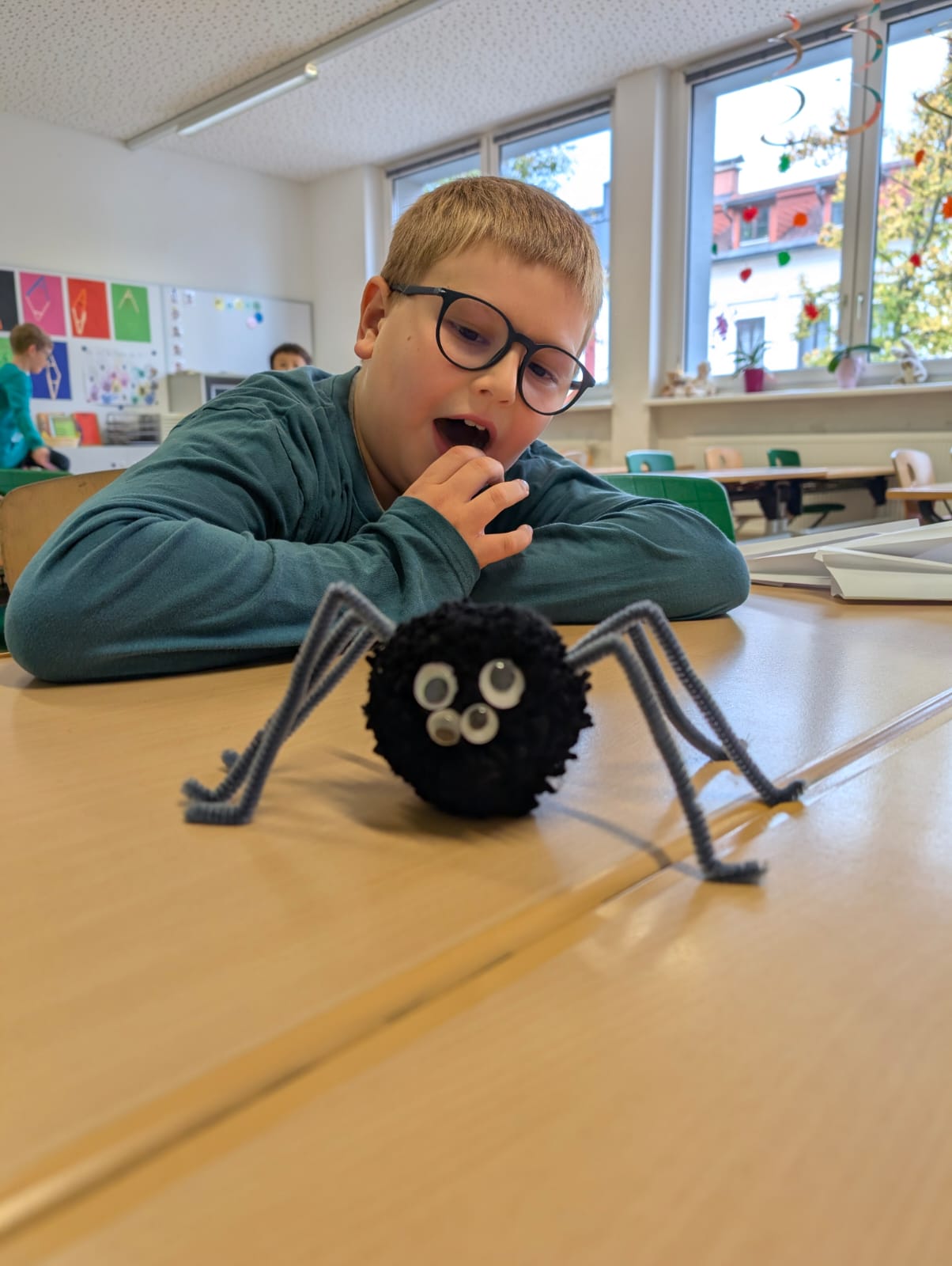 Gruselstimmung schon vor Halloween Die Kinder der Nachmittagsbetreuung bastelten heute schon flauschige Spinnen für Halloween.