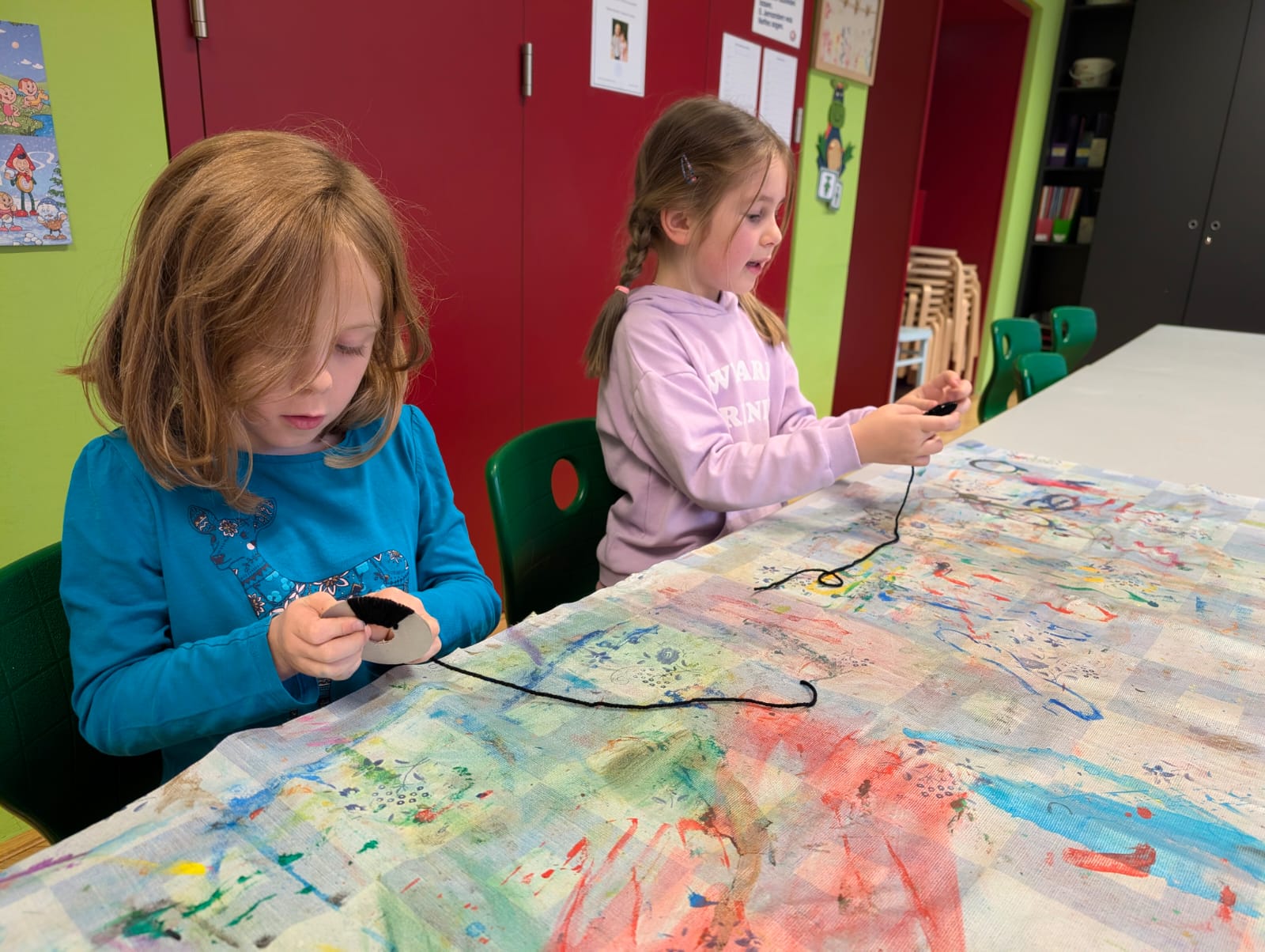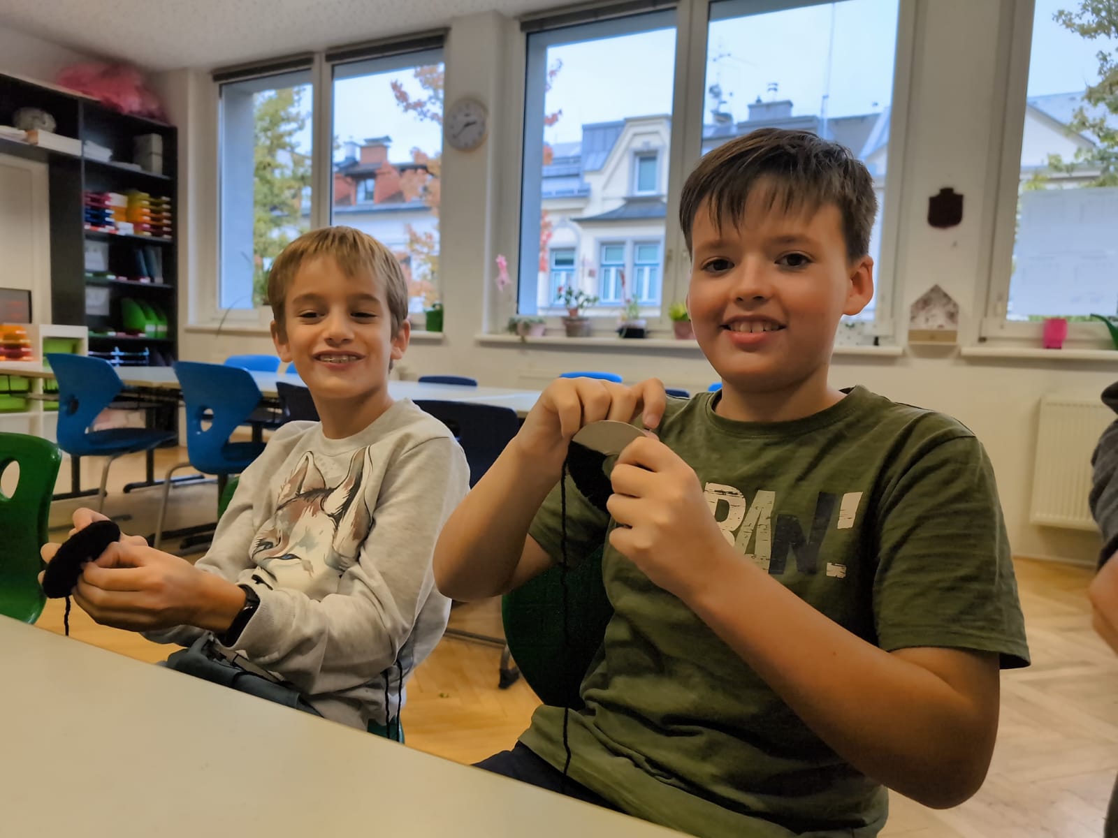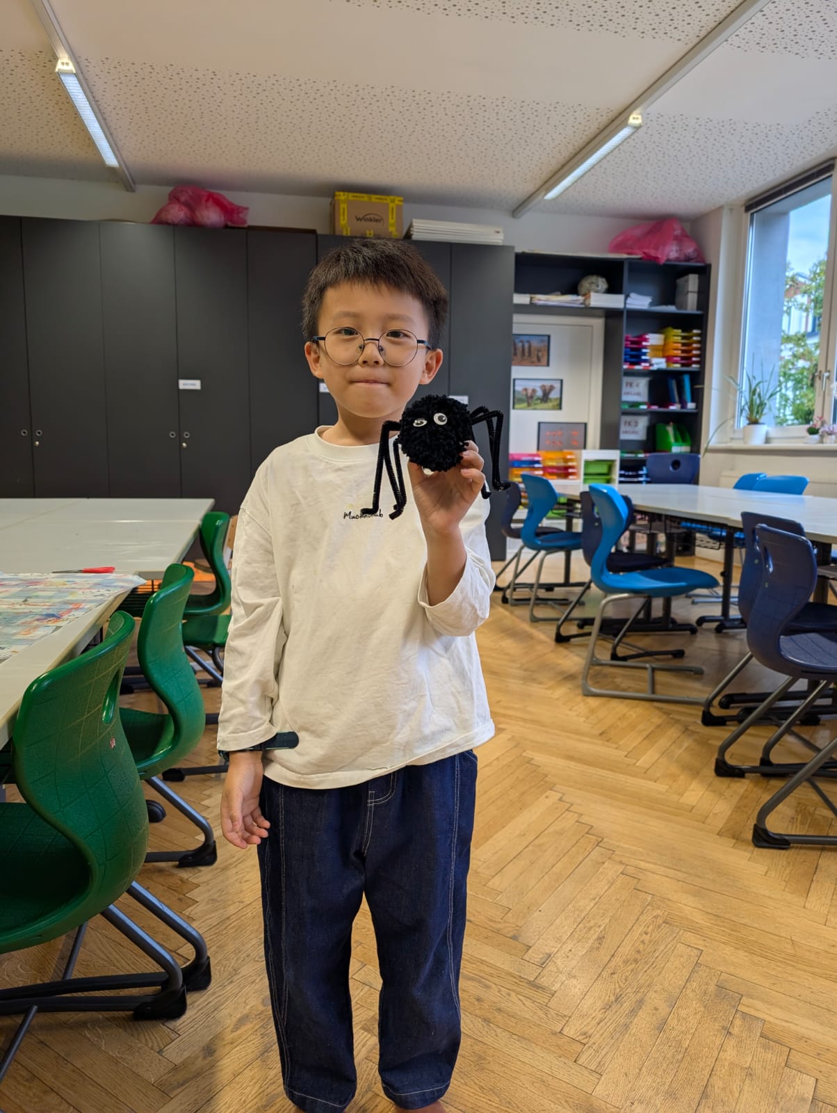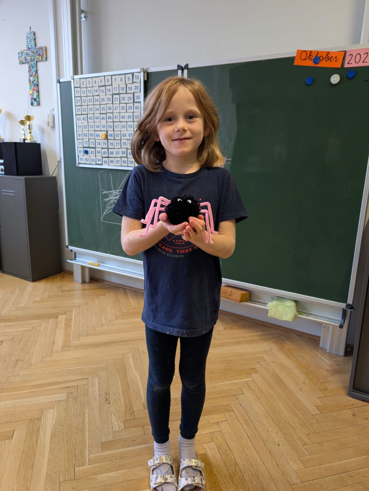 Gruselstimmung schon vor Halloween Die Kinder der Nachmittagsbetreuung bastelten heute schon flauschige Spinnen für Halloween.