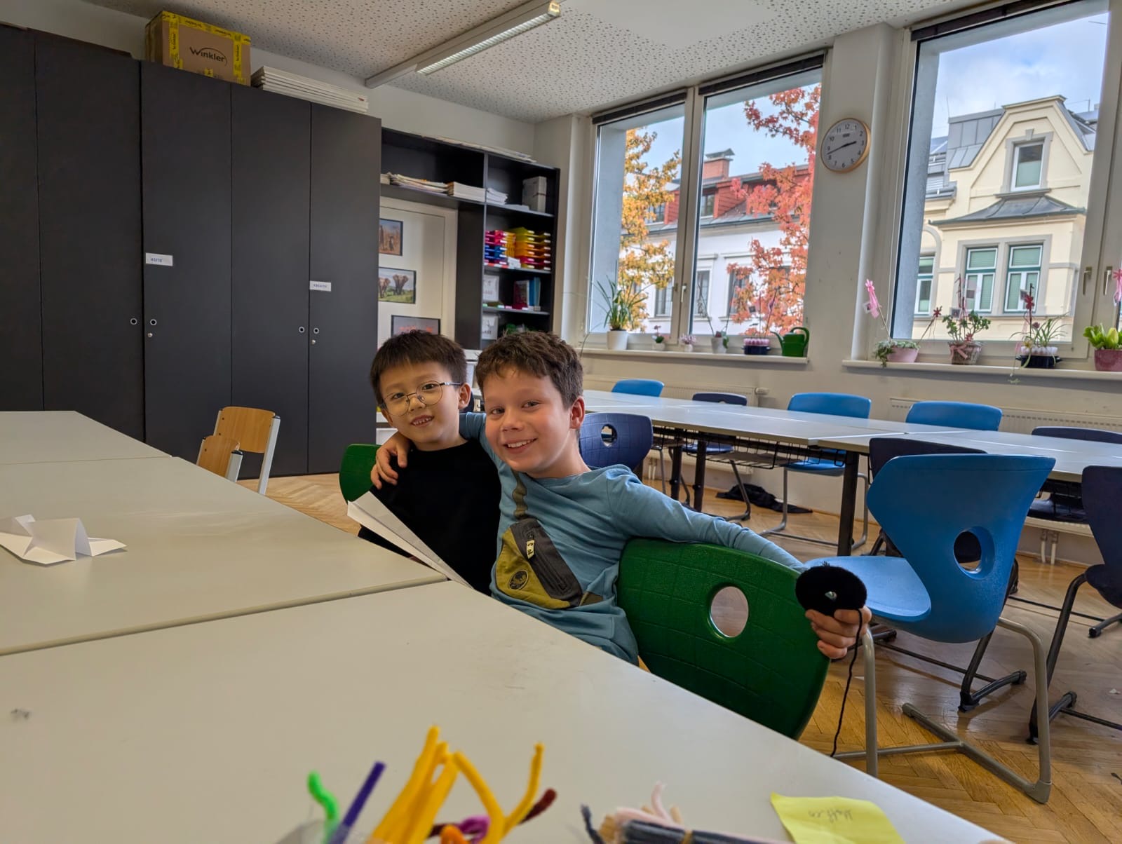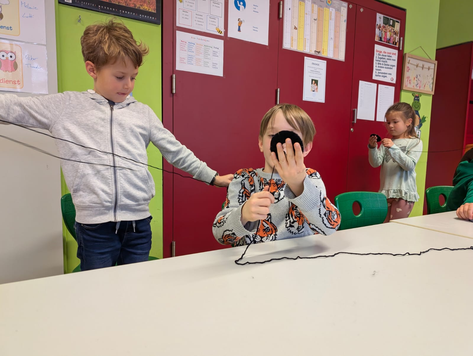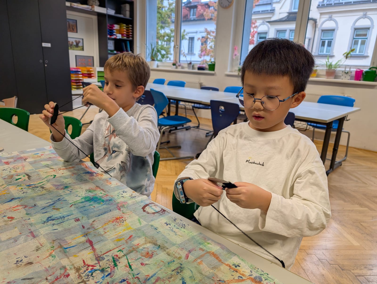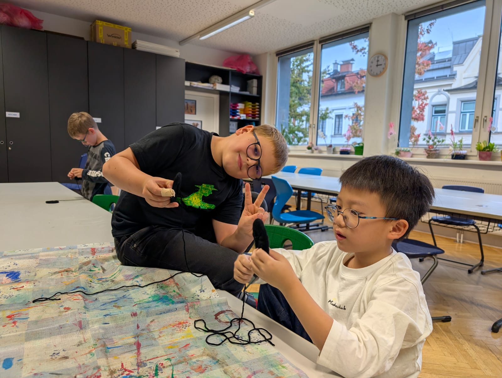 Gruselstimmung schon vor Halloween Die Kinder der Nachmittagsbetreuung bastelten heute schon flauschige Spinnen für Halloween.