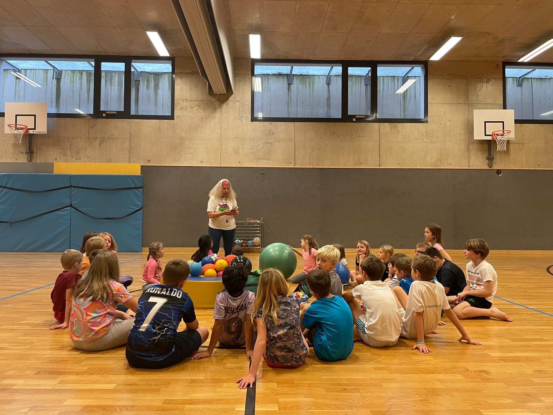 Die 3. Klassen hatten Wurf- und Fangübungen mit Barbara vom ASKÖ.