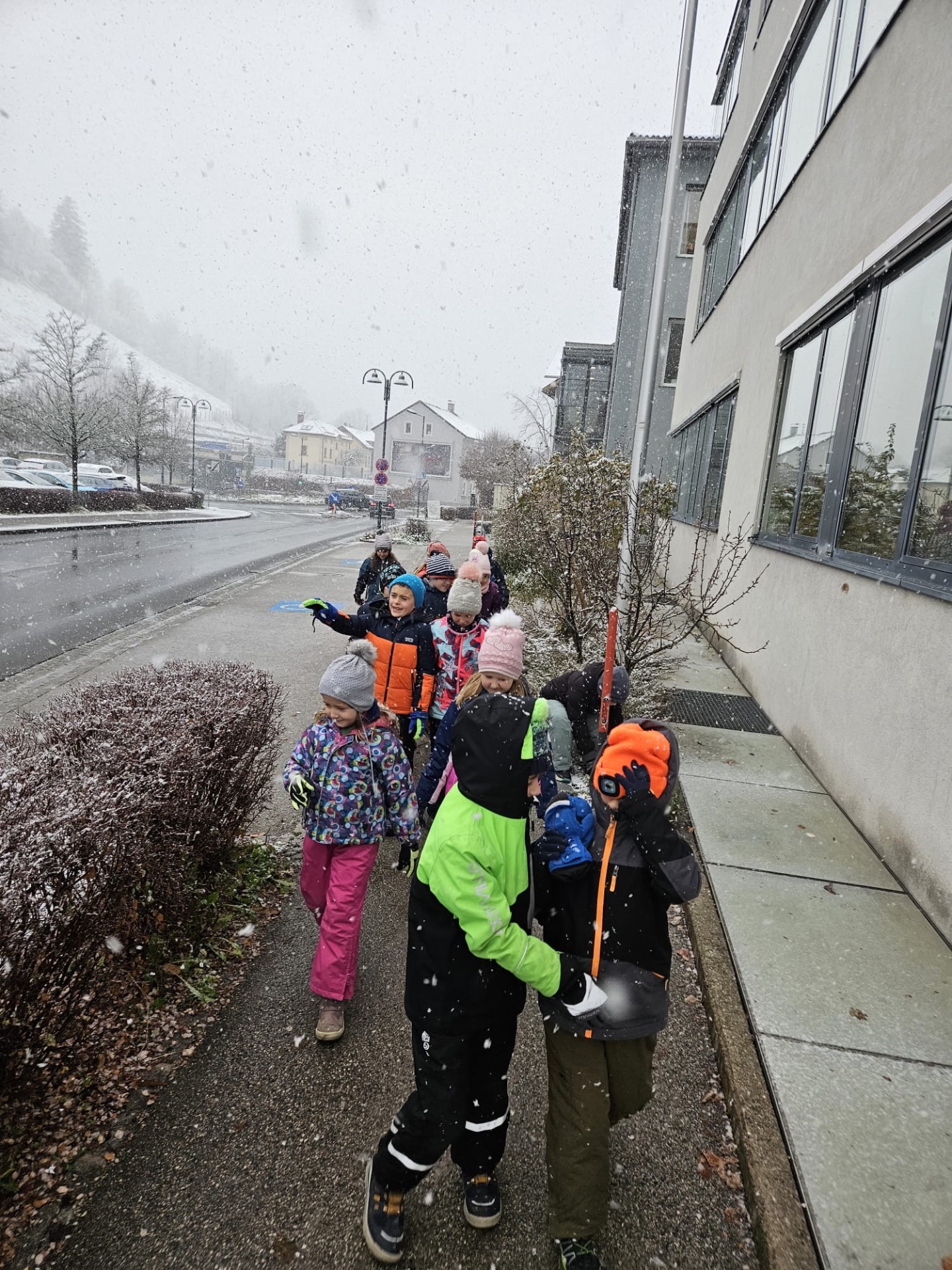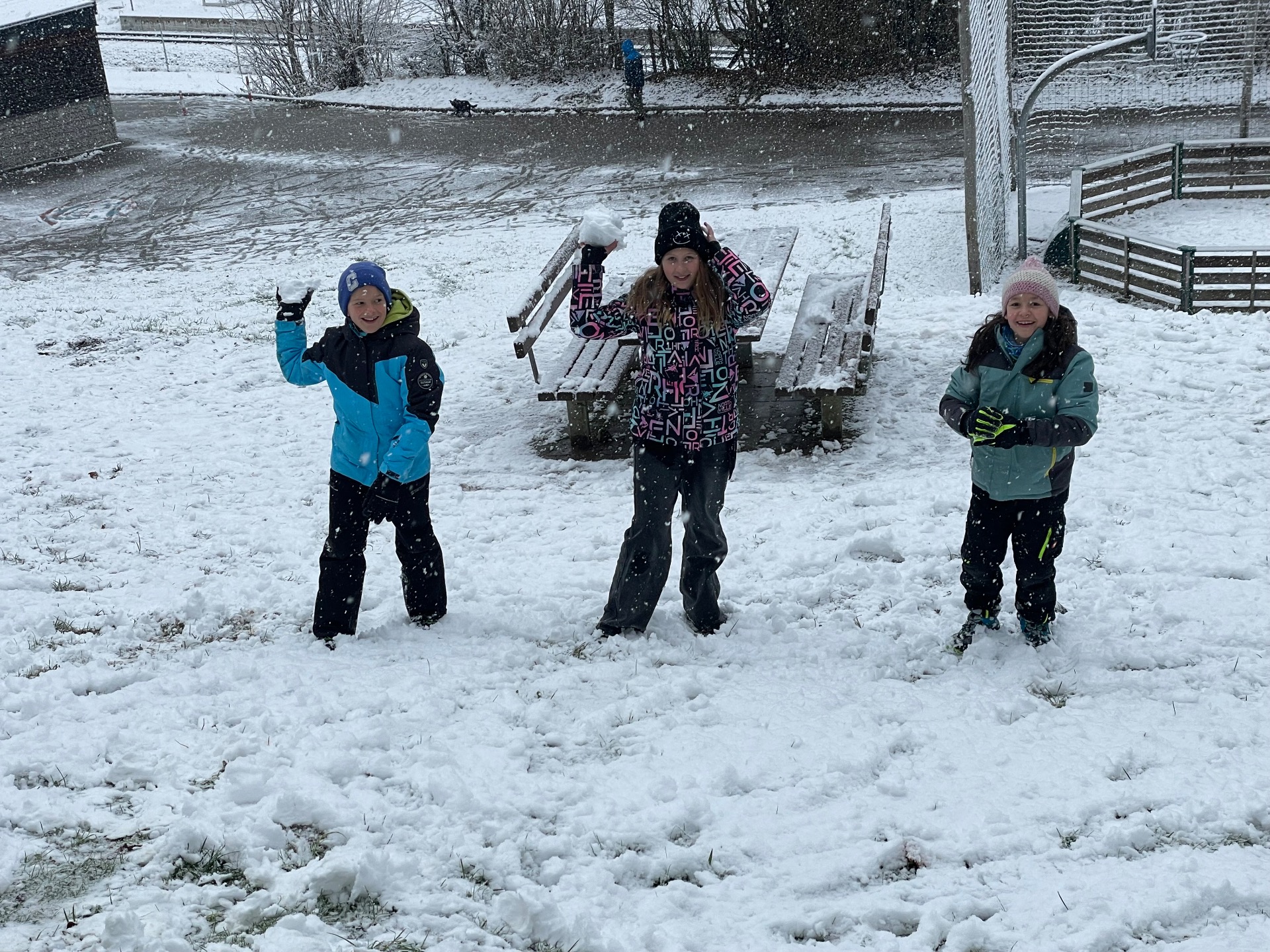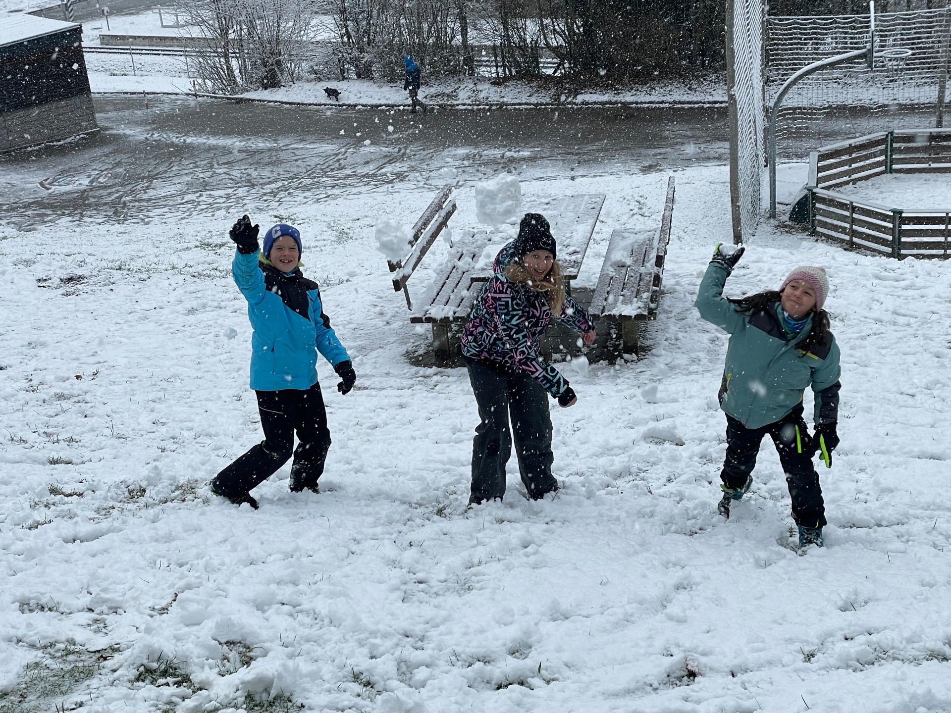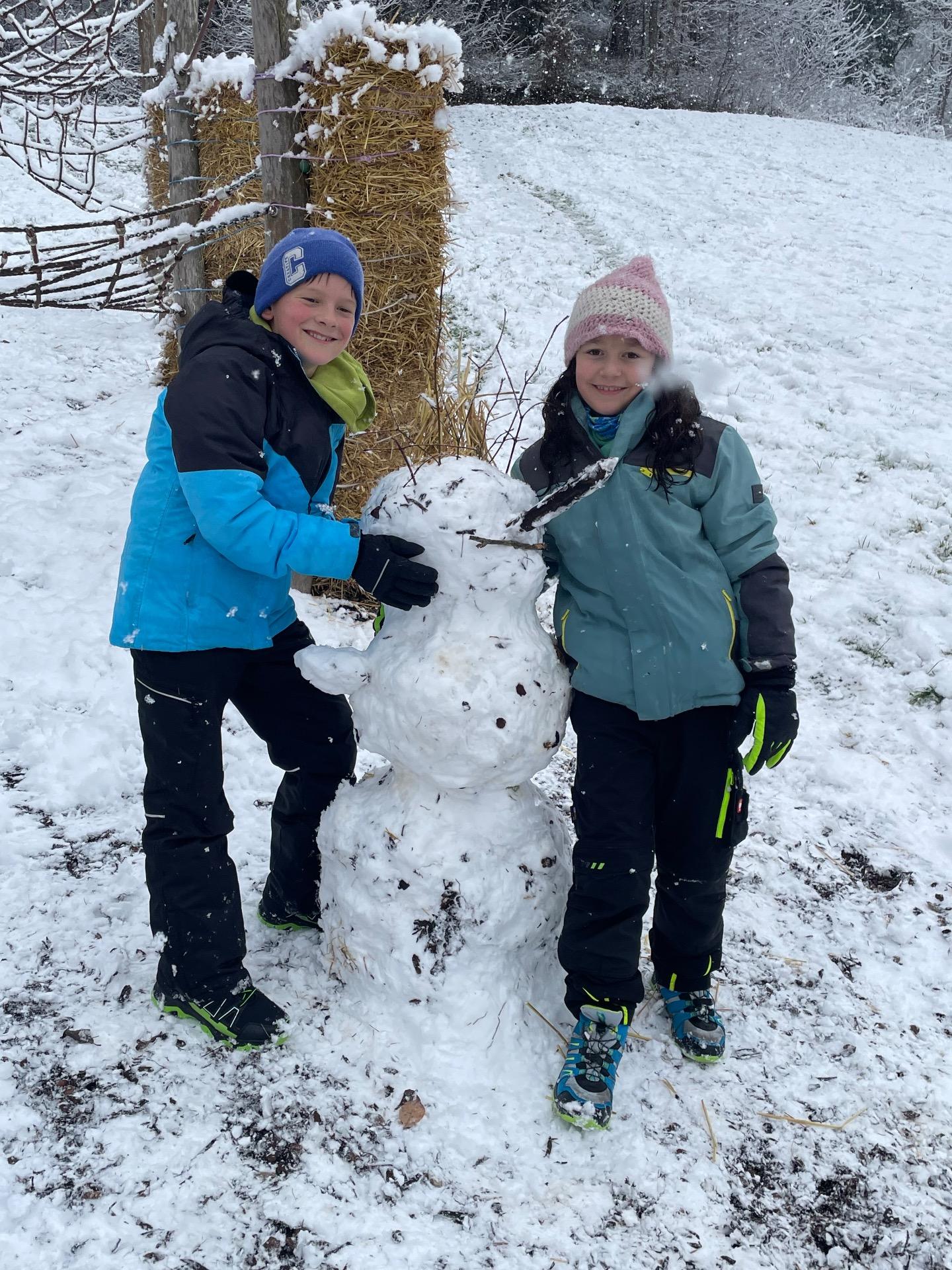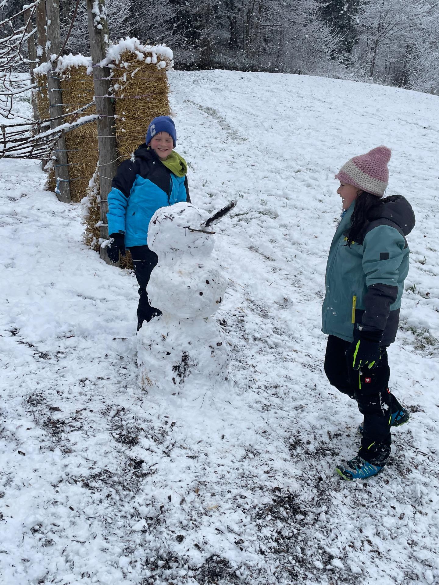 Die Kinder der 2a und 4a genießen den ersten Schnee.