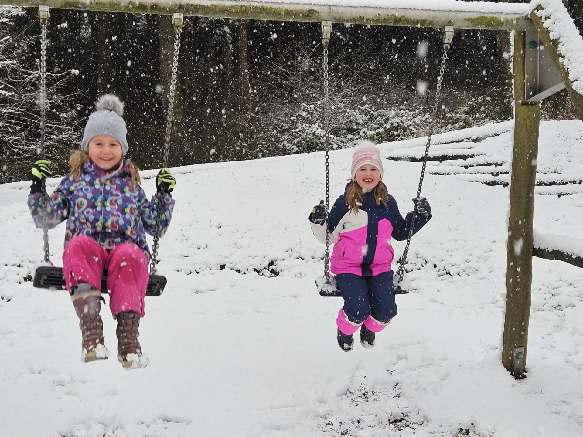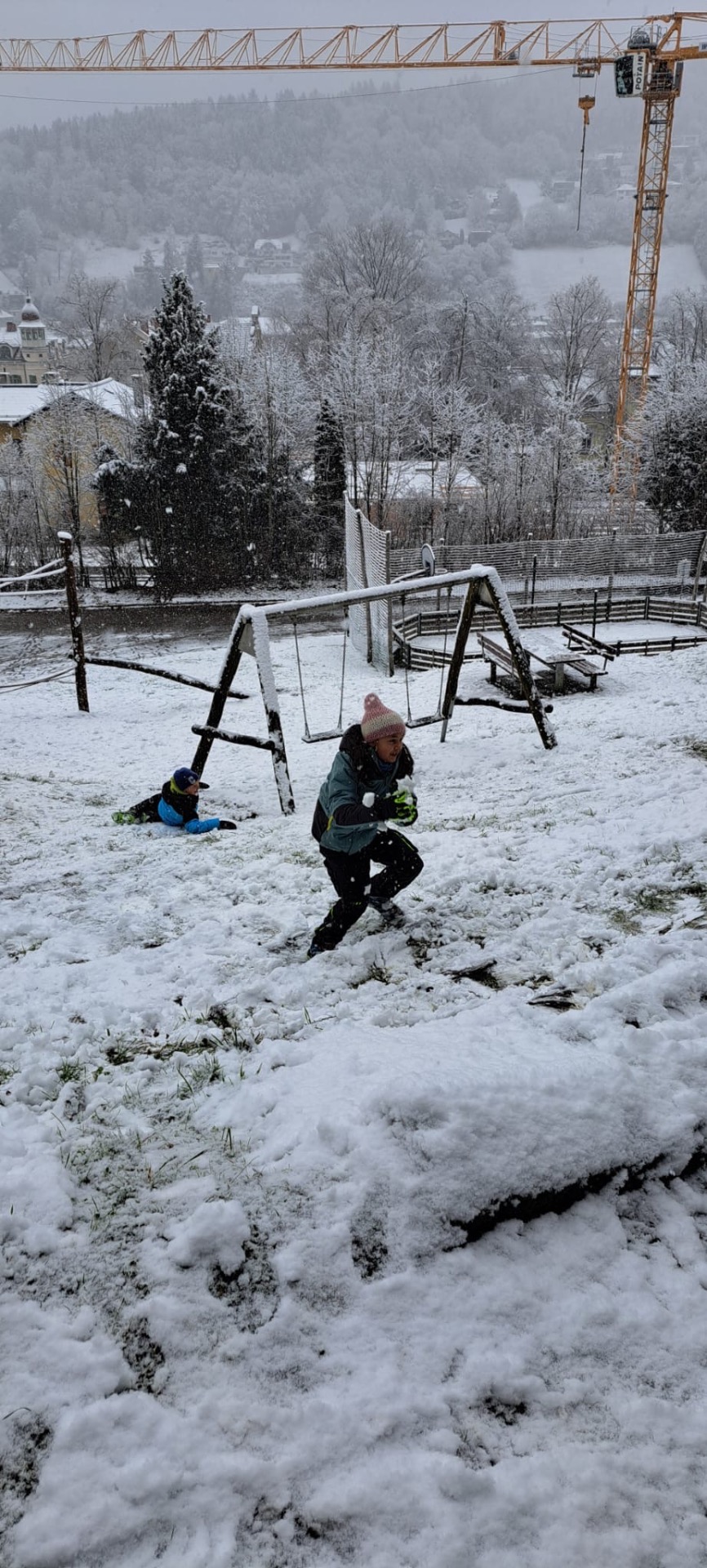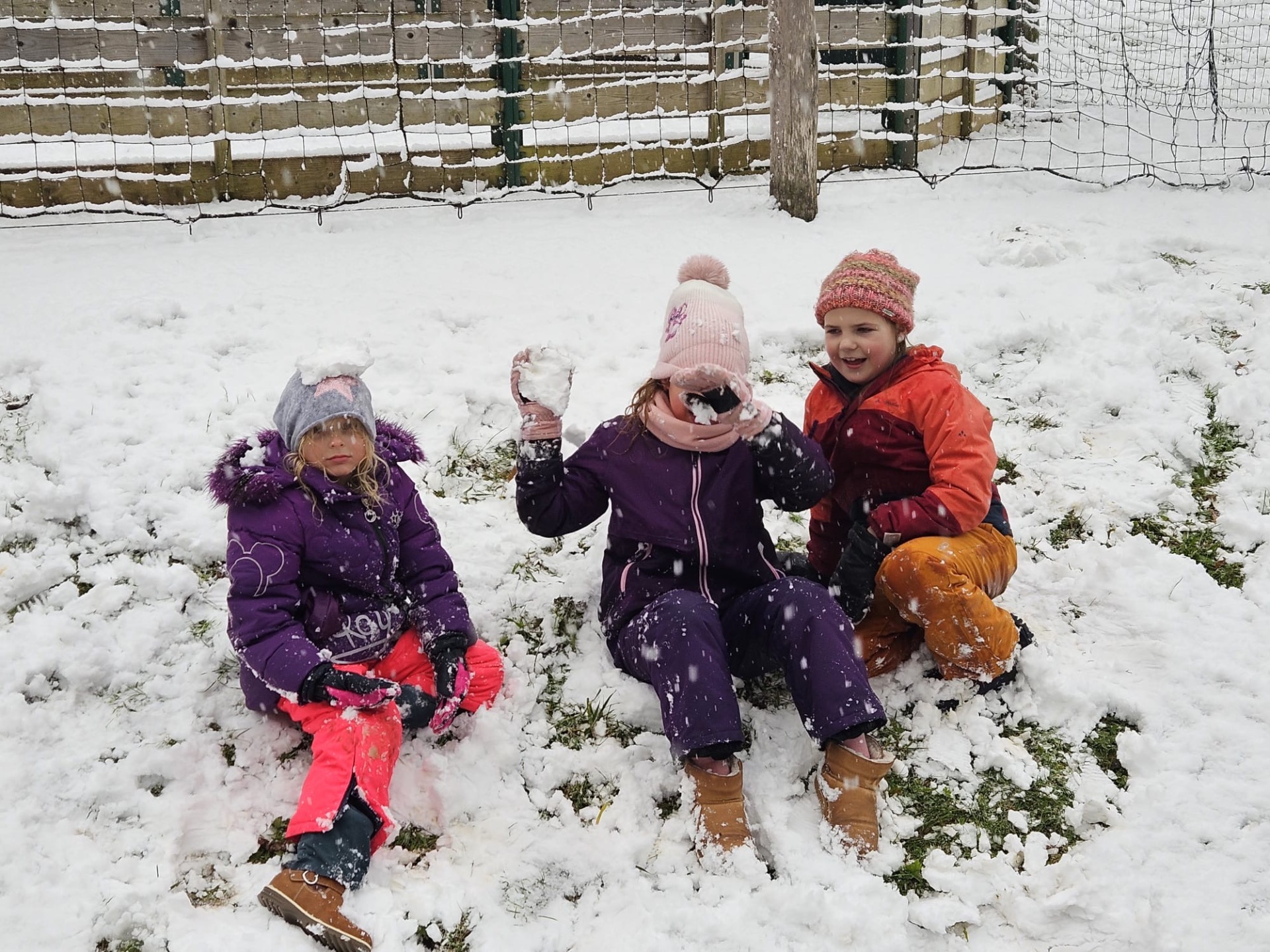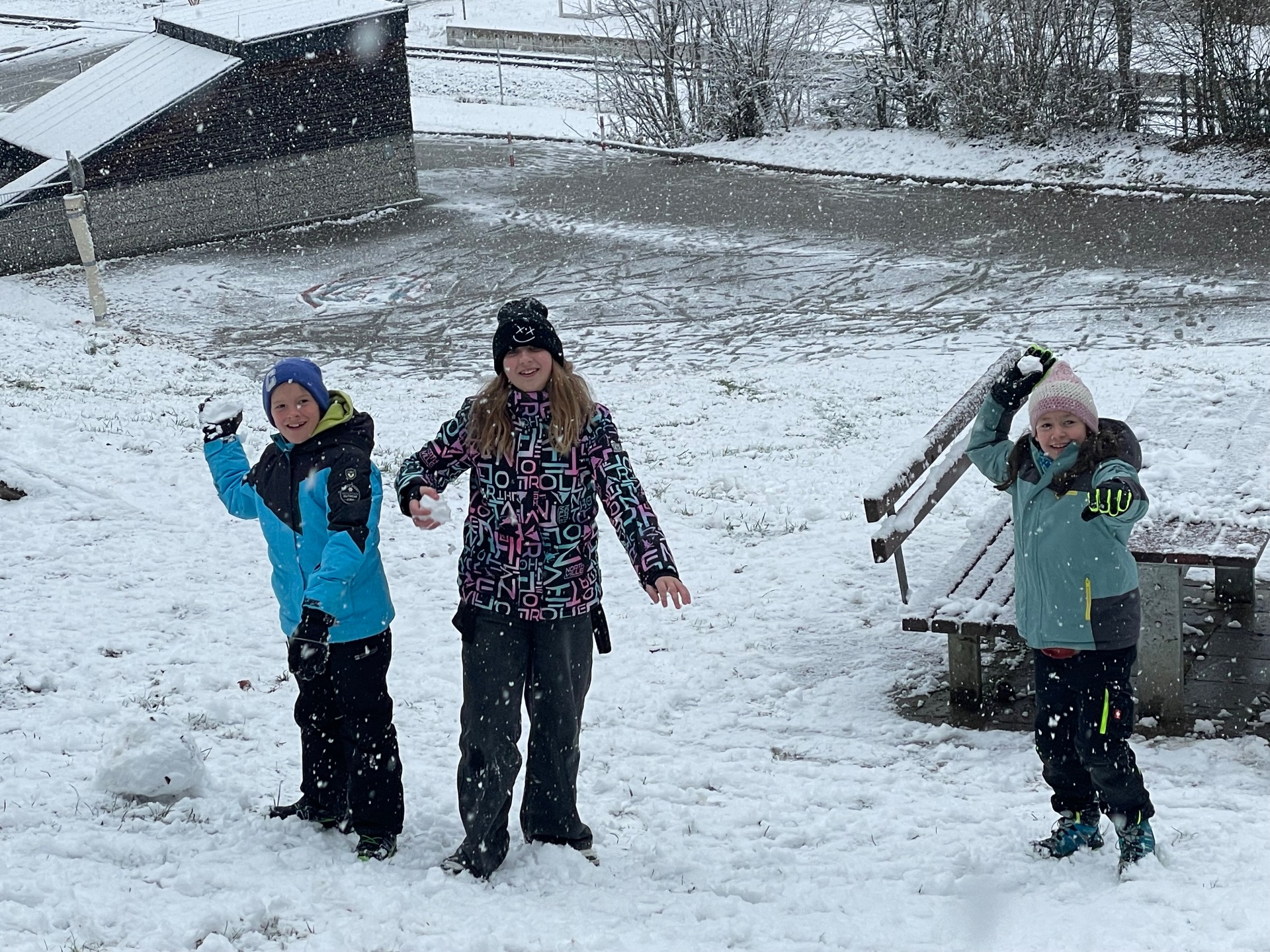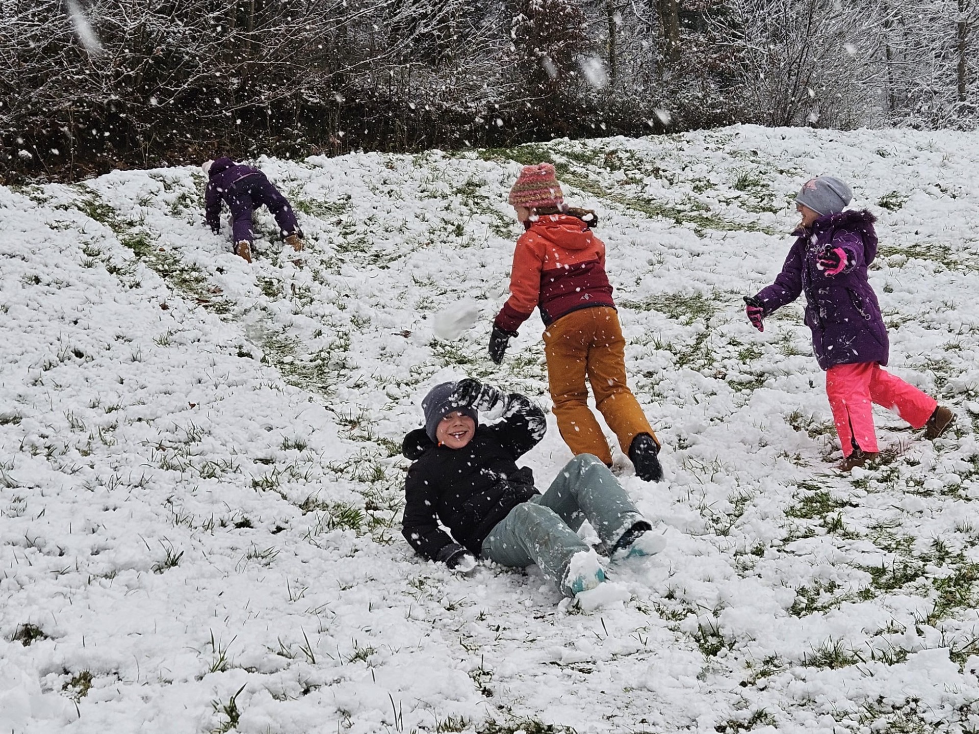 Die Kinder der 2a und 4a genießen den ersten Schnee.