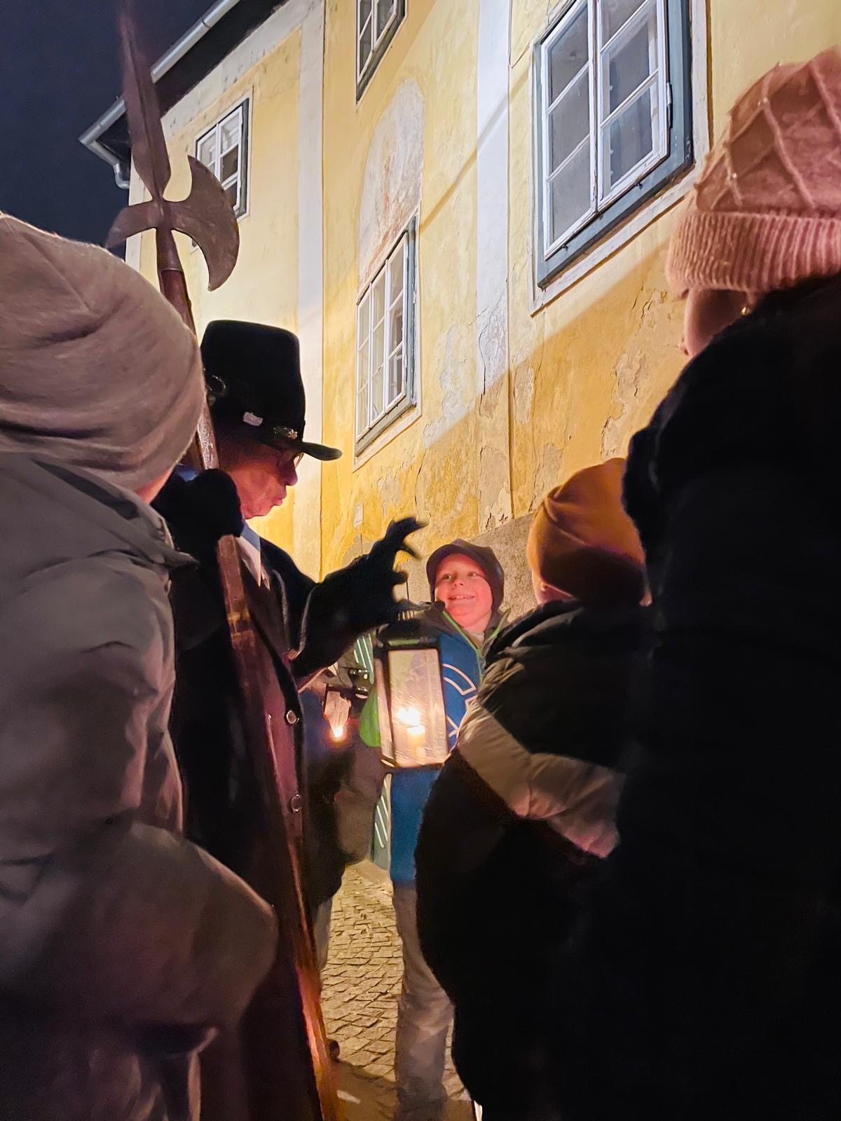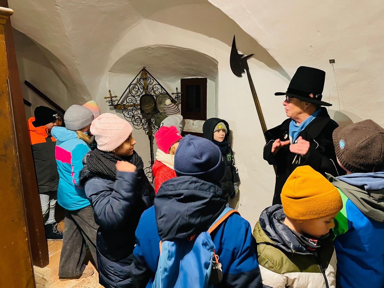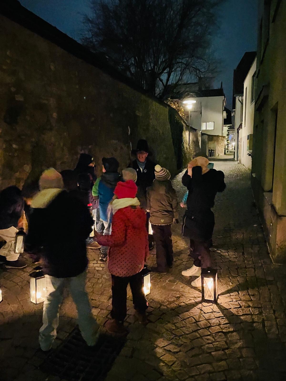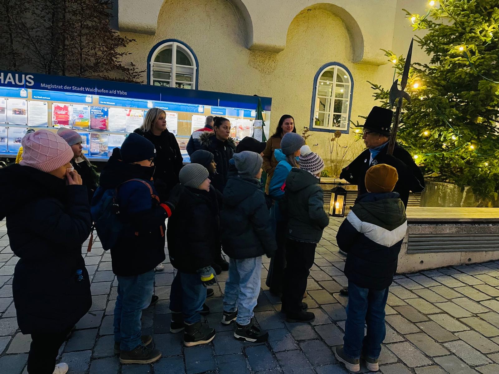Nachtwächterführung Die Nachtwächterin Doris Dürauer führte die Kinder der 3b durch ein vorweihnachtliches Waidhofen. Herzlichen Dank für die spannende Reise in die Vergangenheit!