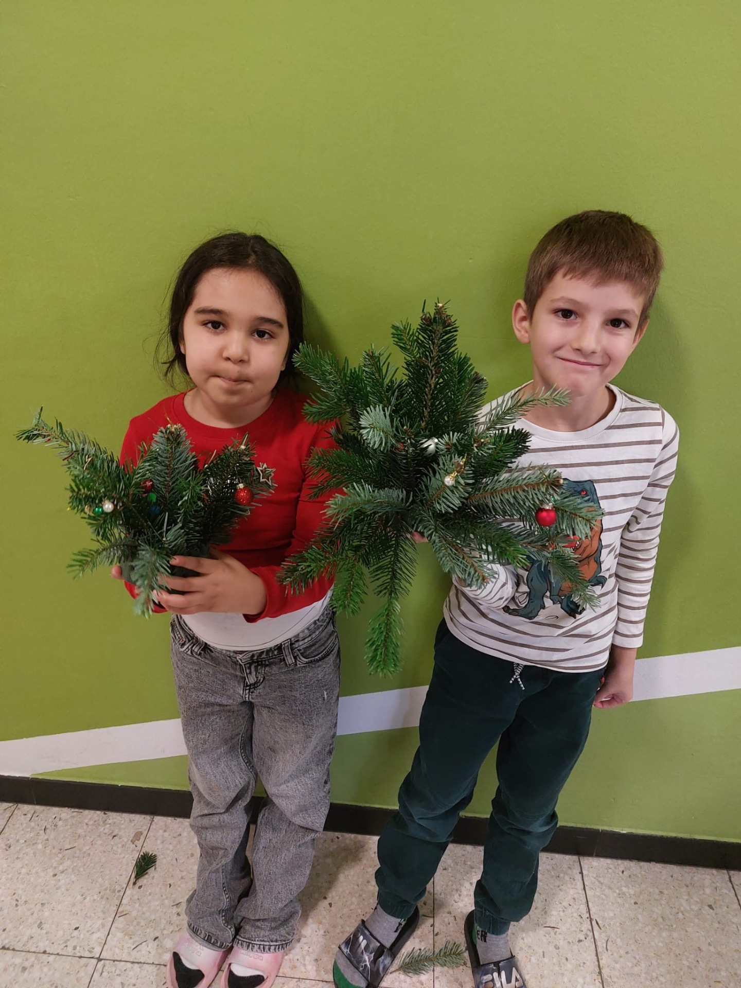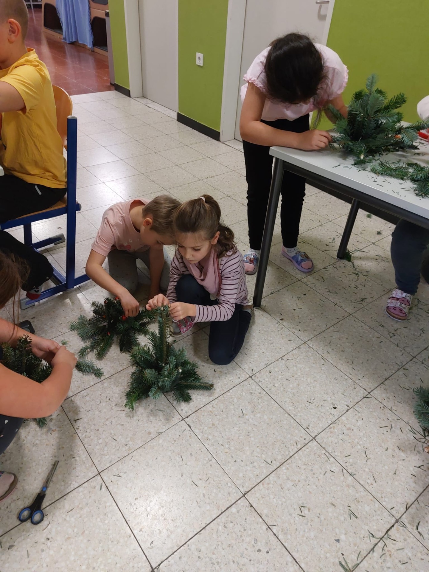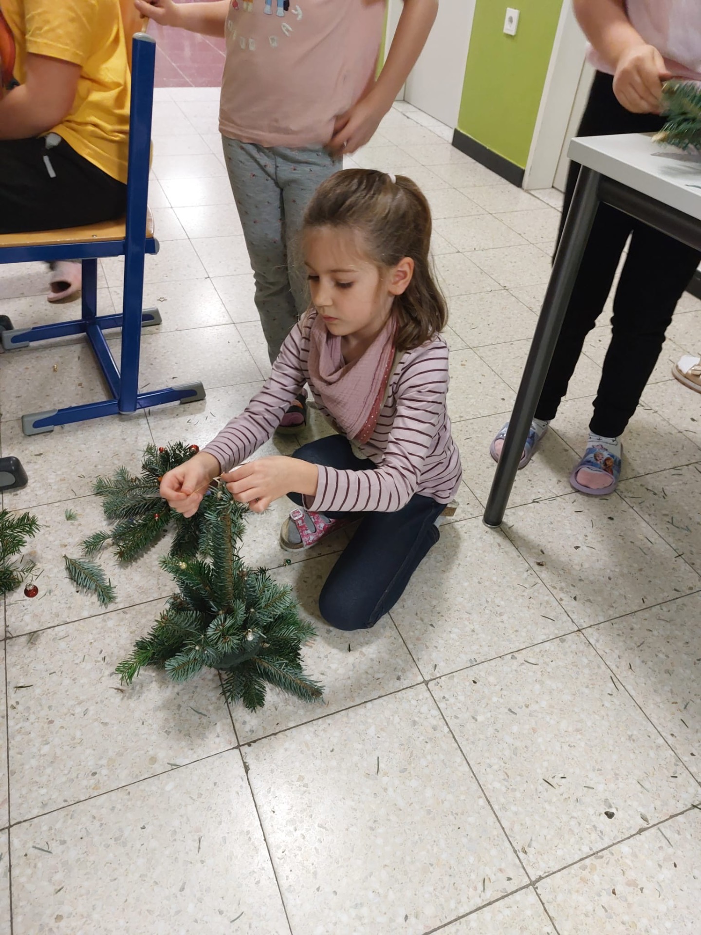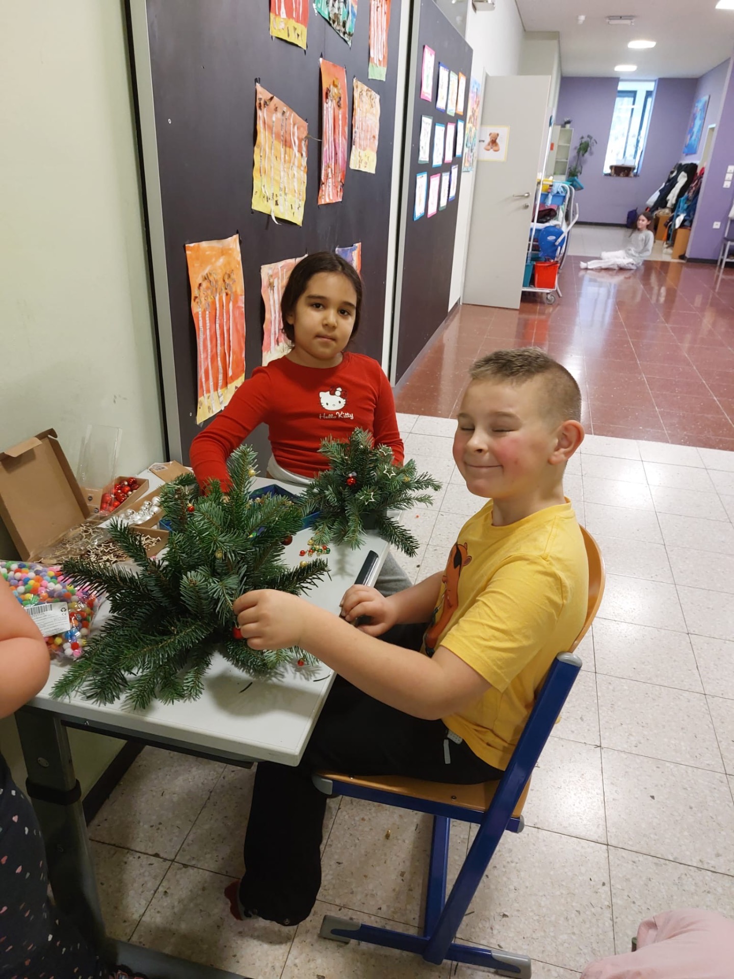 Die Zeitklasse 1+2 stellte in Werken kleine Weihnachtsgestecke her.