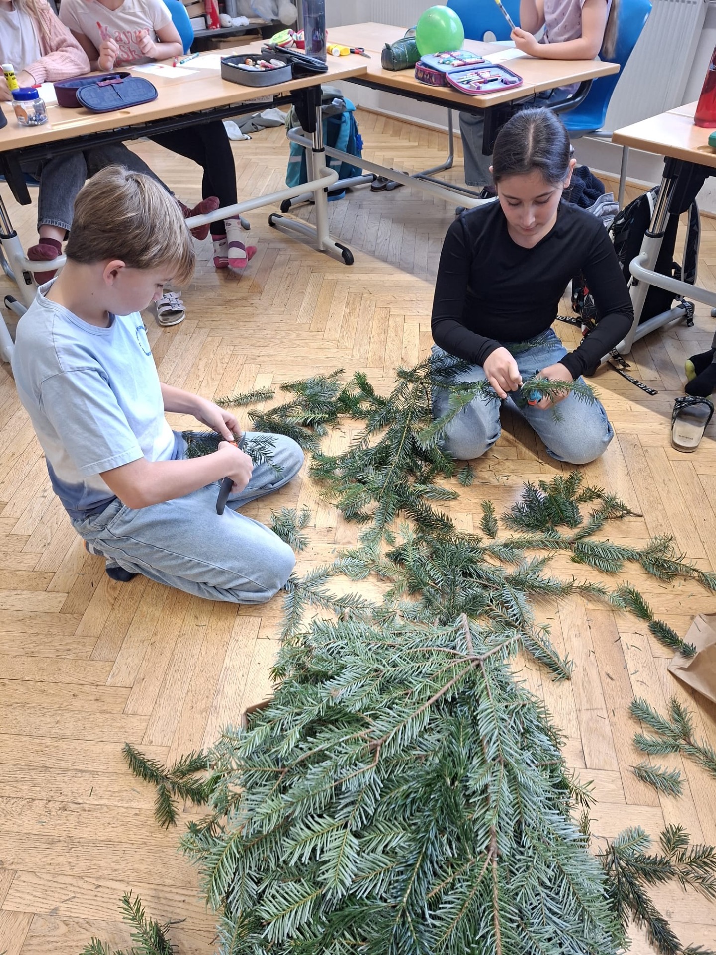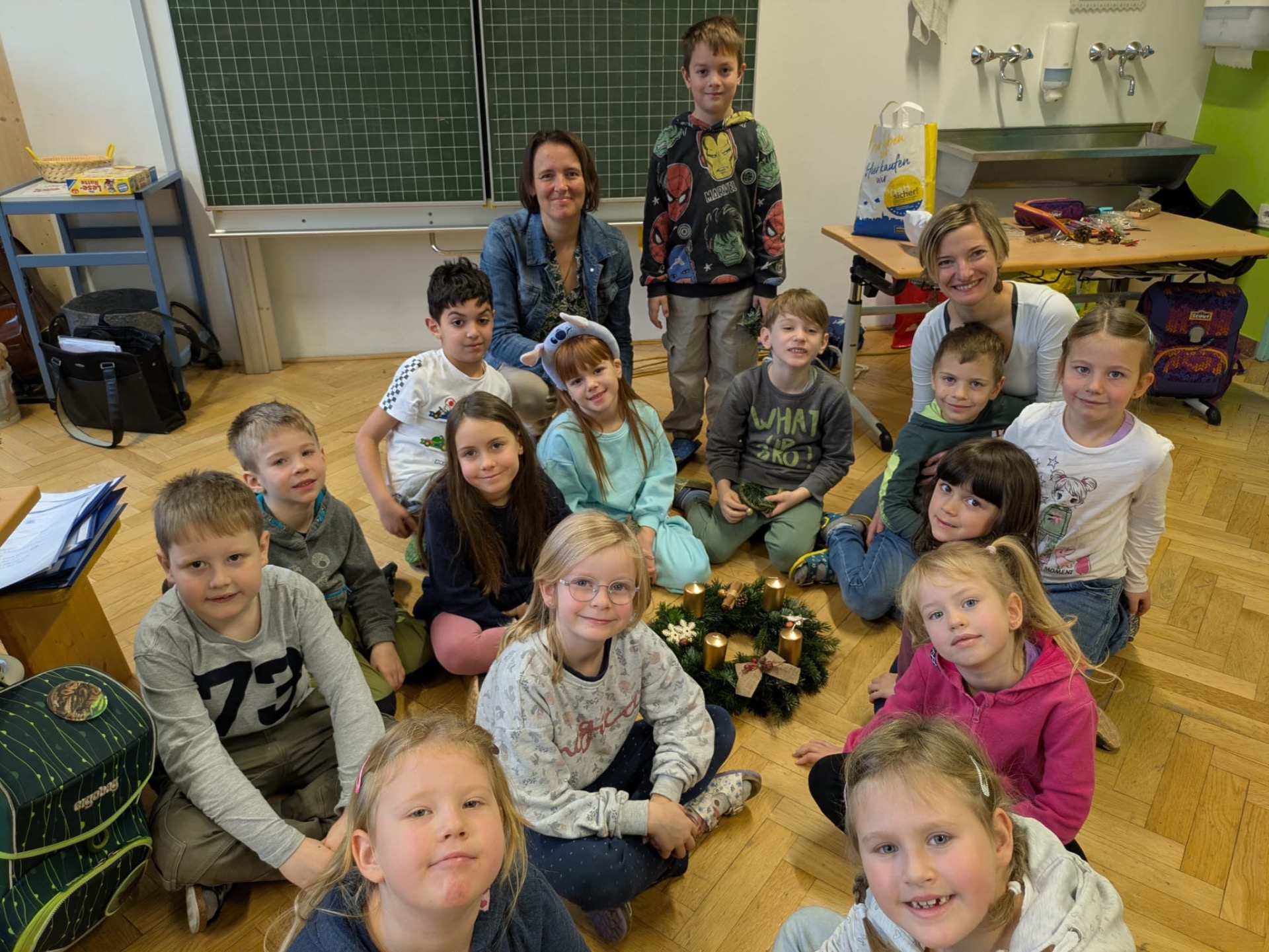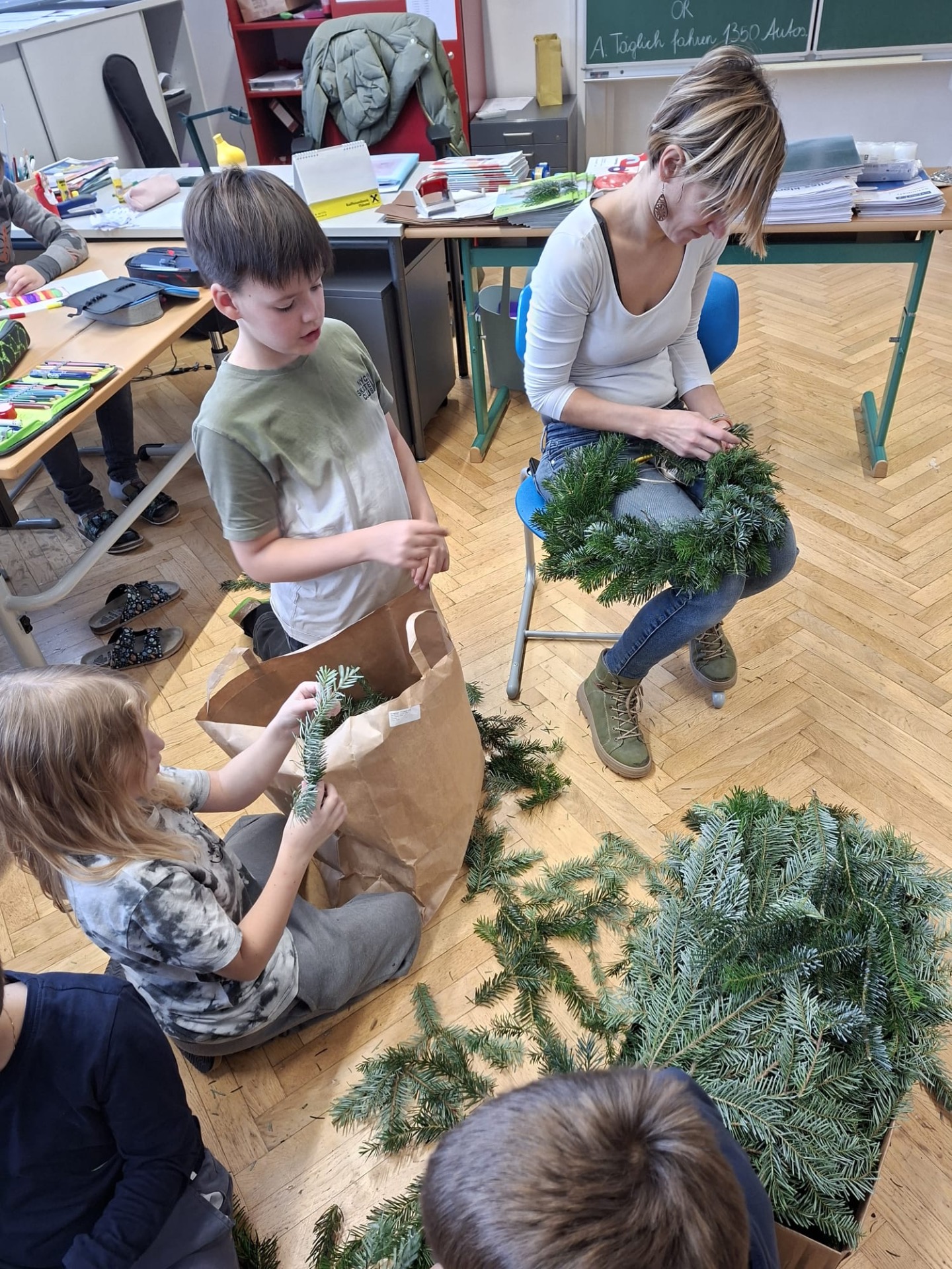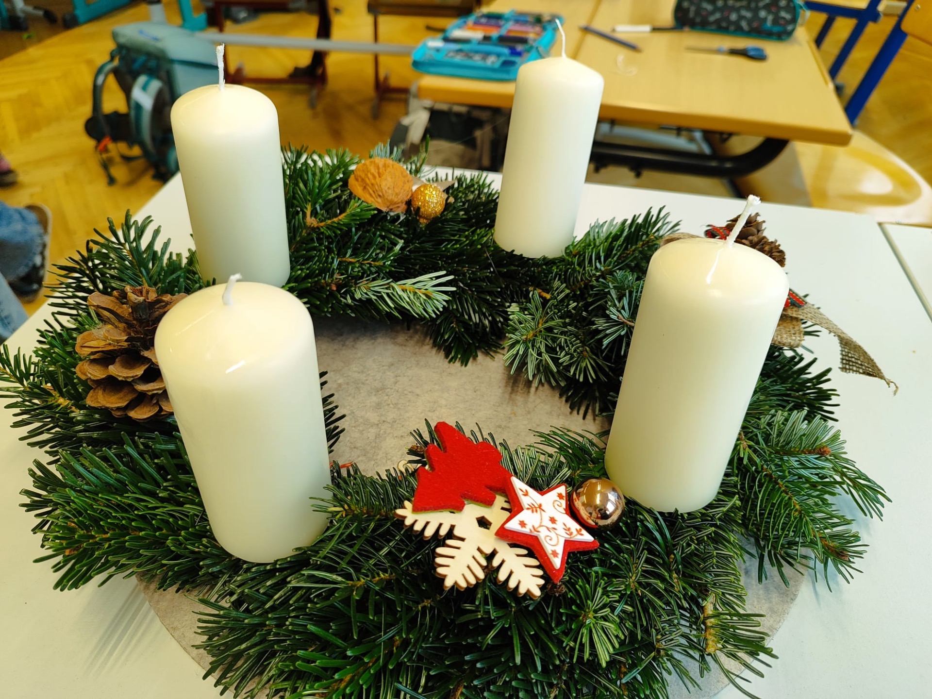 Danke für die Adventkränze! Ein großes DANKE an Maria Fuchsluger, die mit den Kindern der 1a, 3a und 4b Adventkränze für die Klassen gebunden hat.