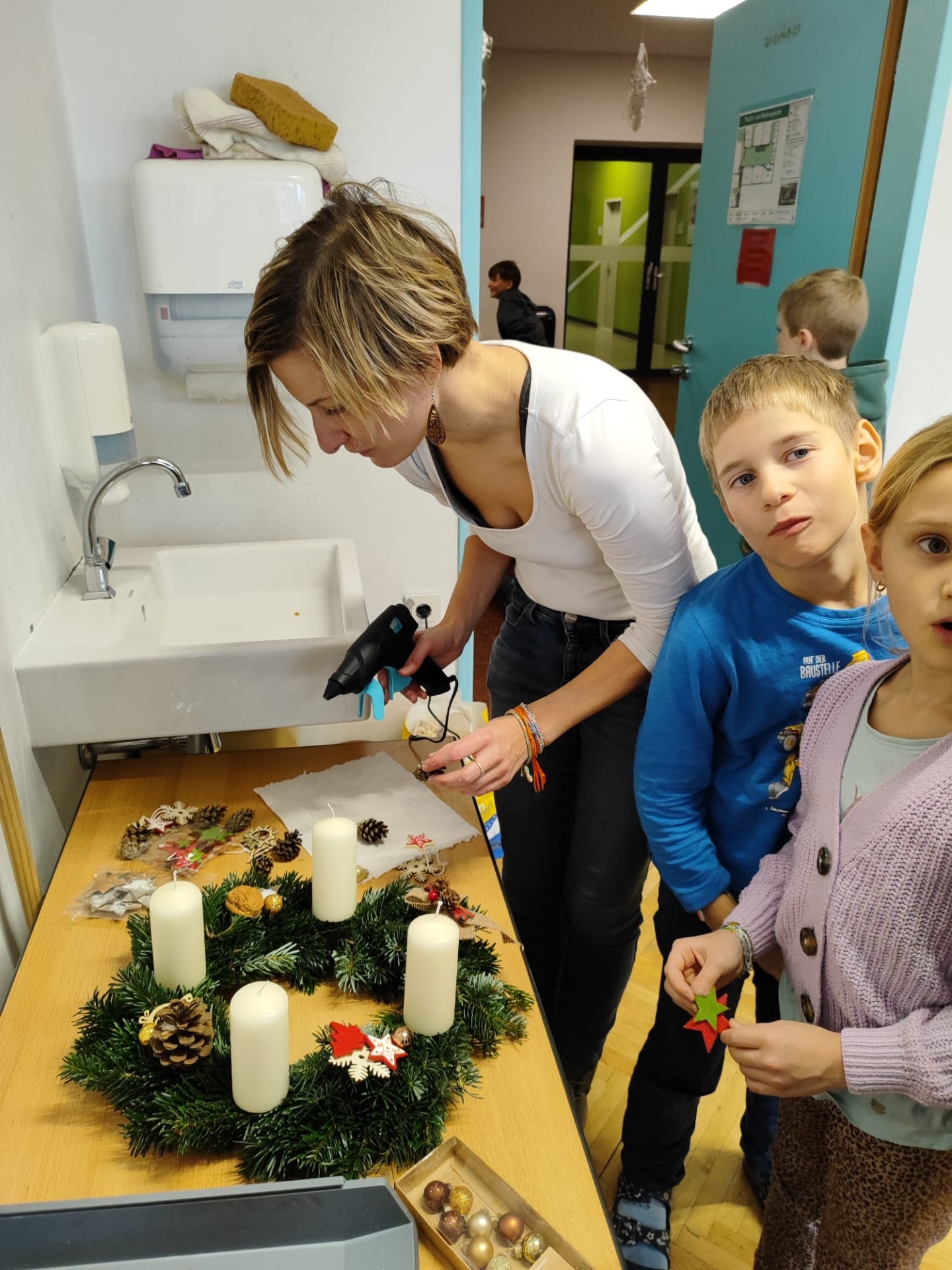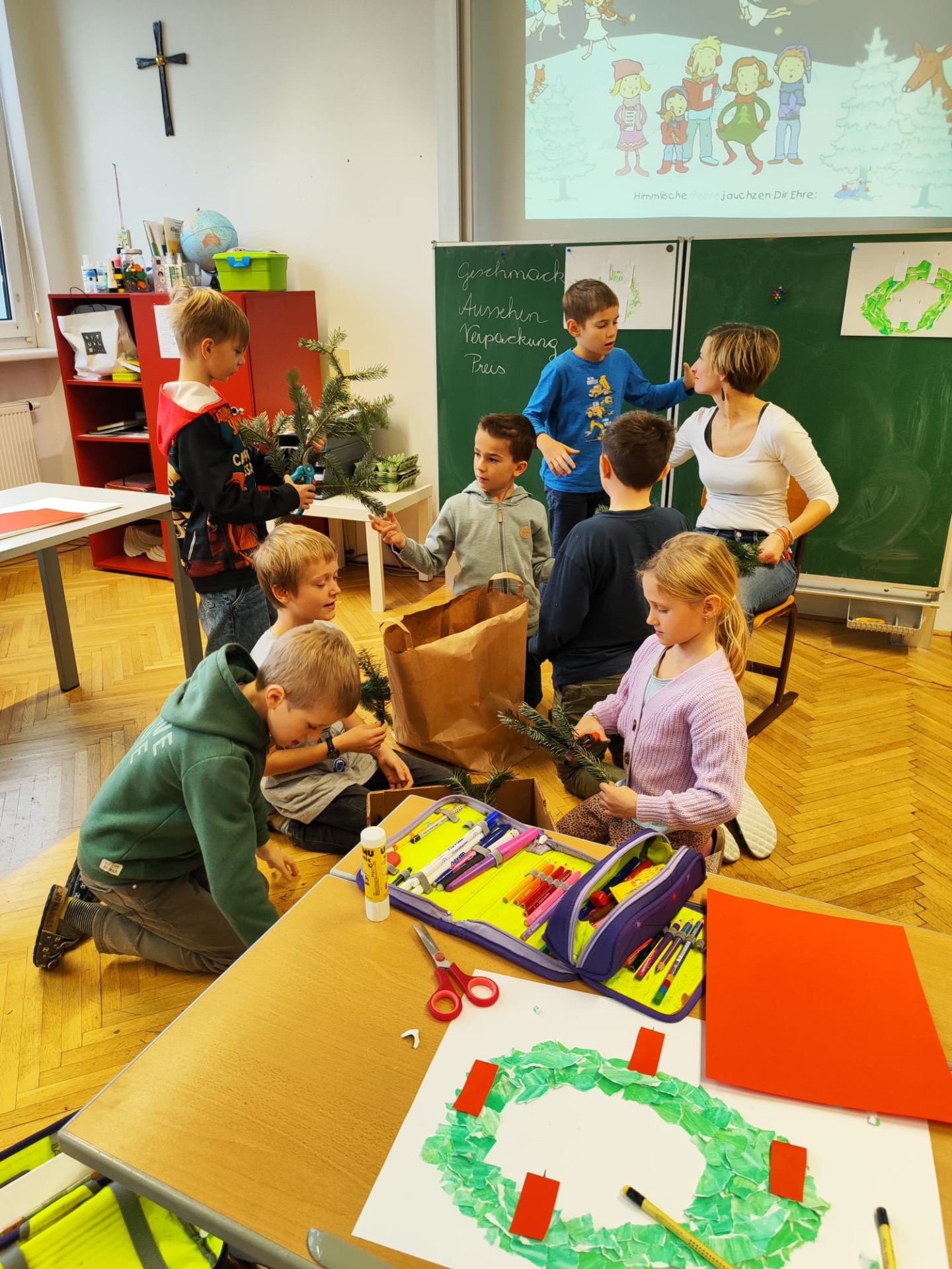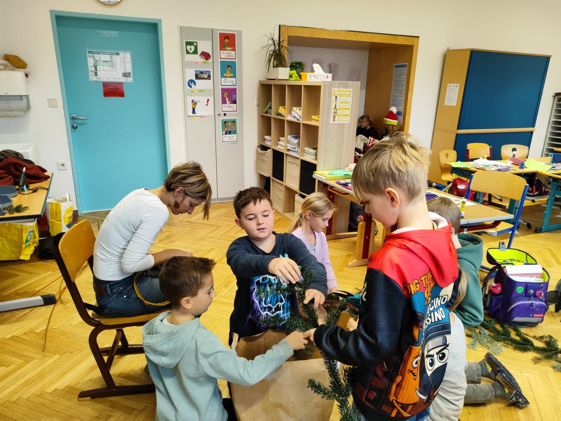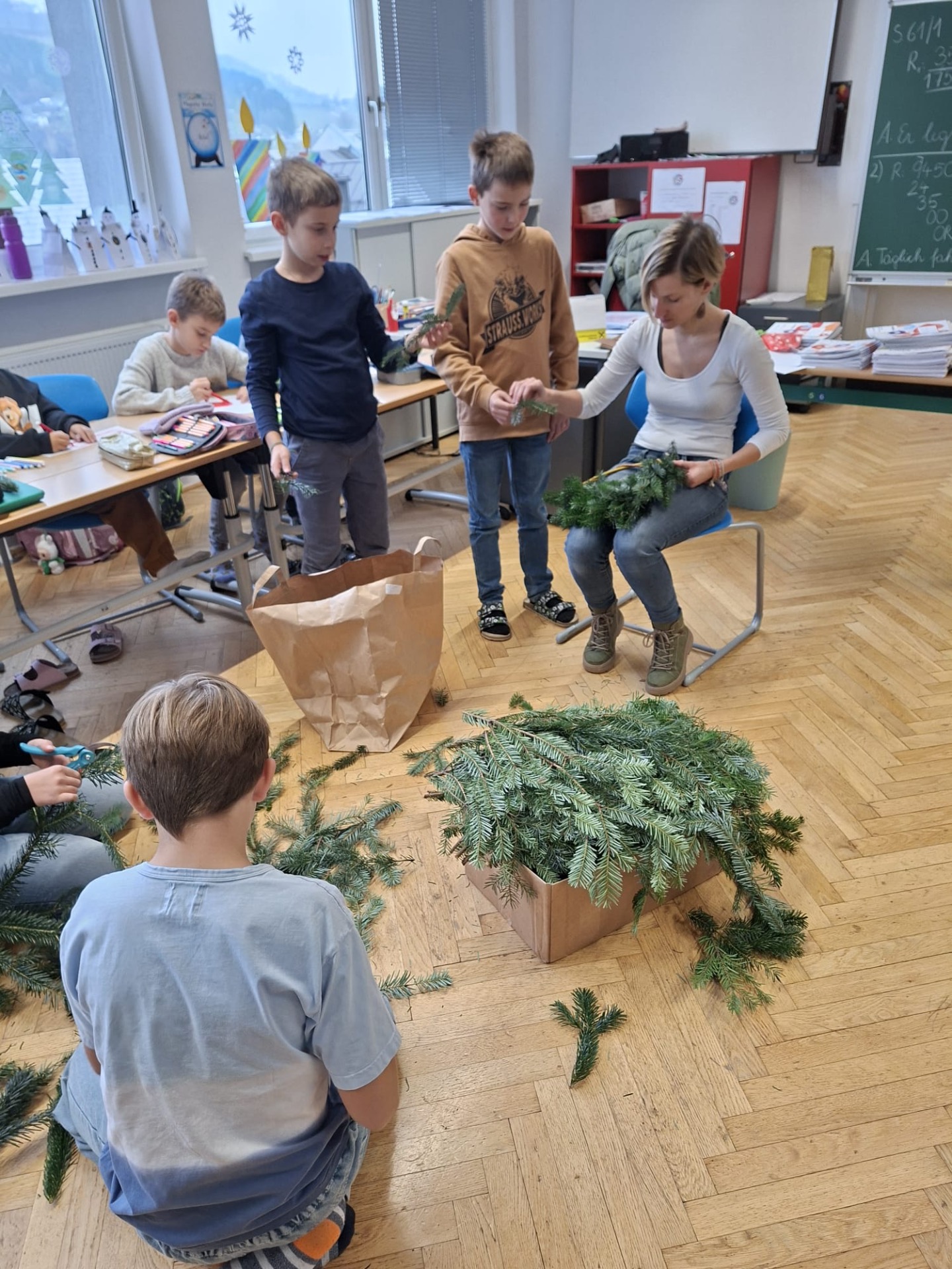 Danke für die Adventkränze! Ein großes DANKE an Maria Fuchsluger, die mit den Kindern der 1a, 3a und 4b Adventkränze für die Klassen gebunden hat.