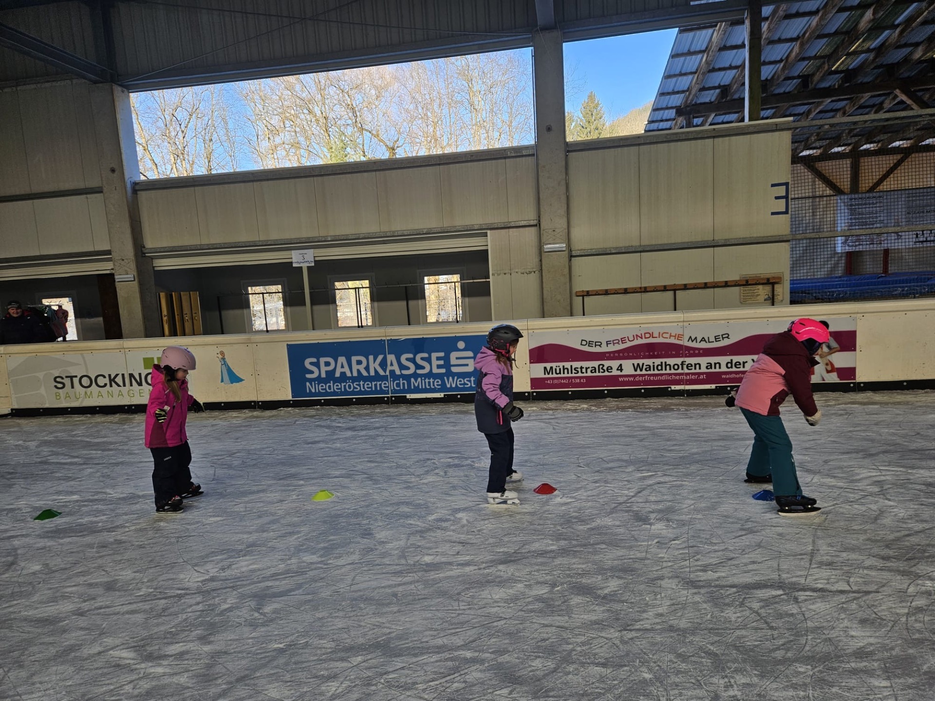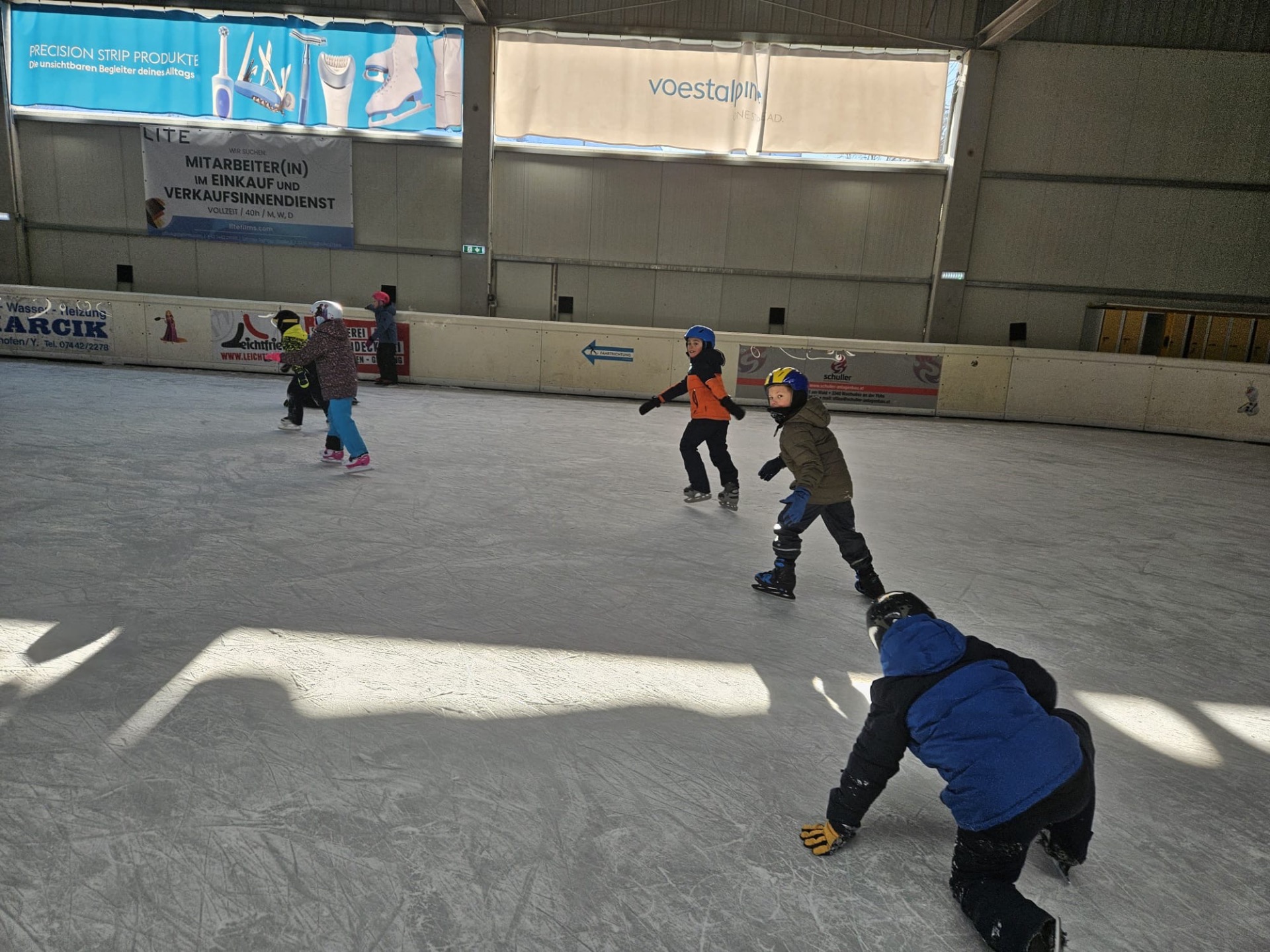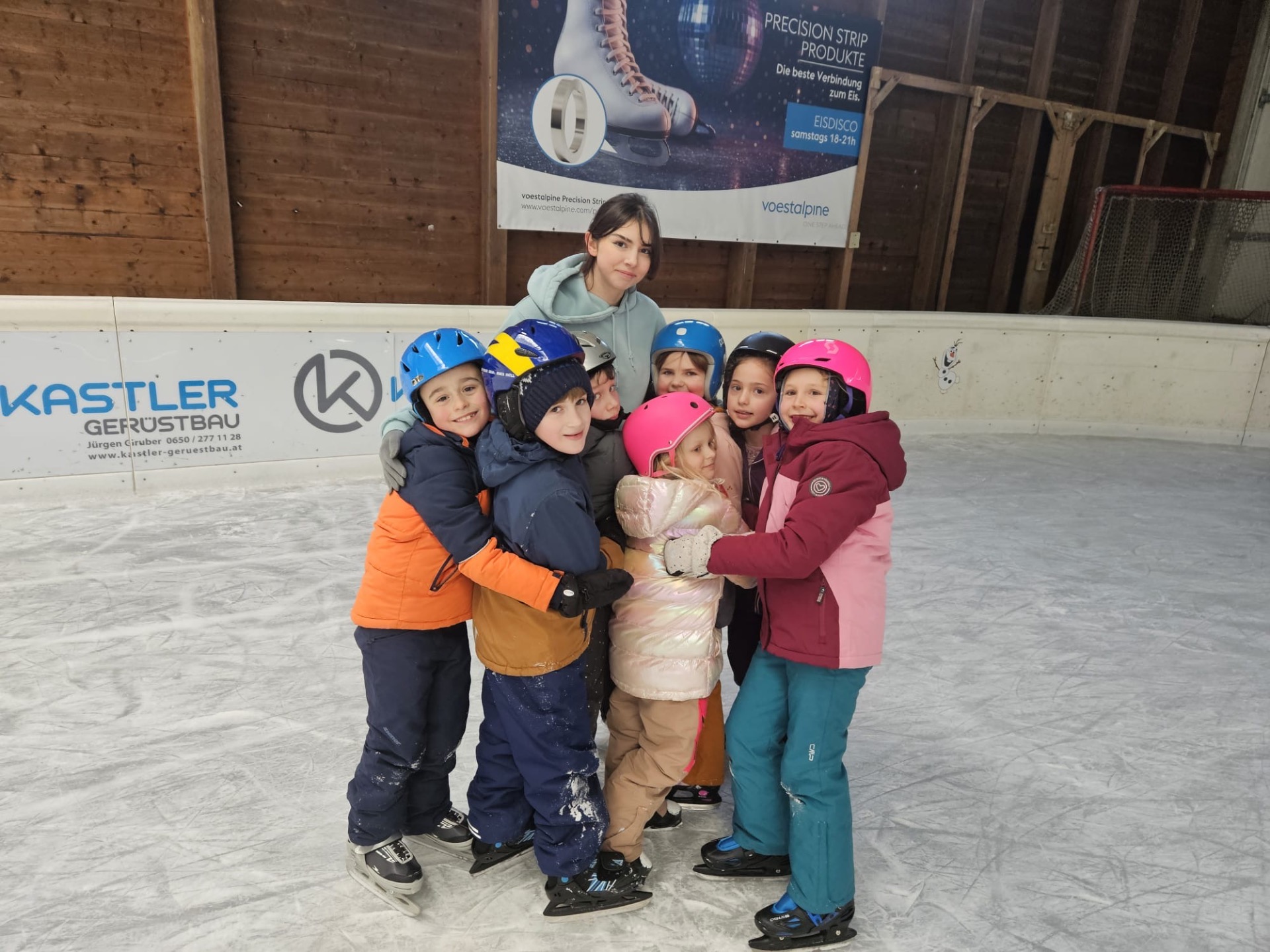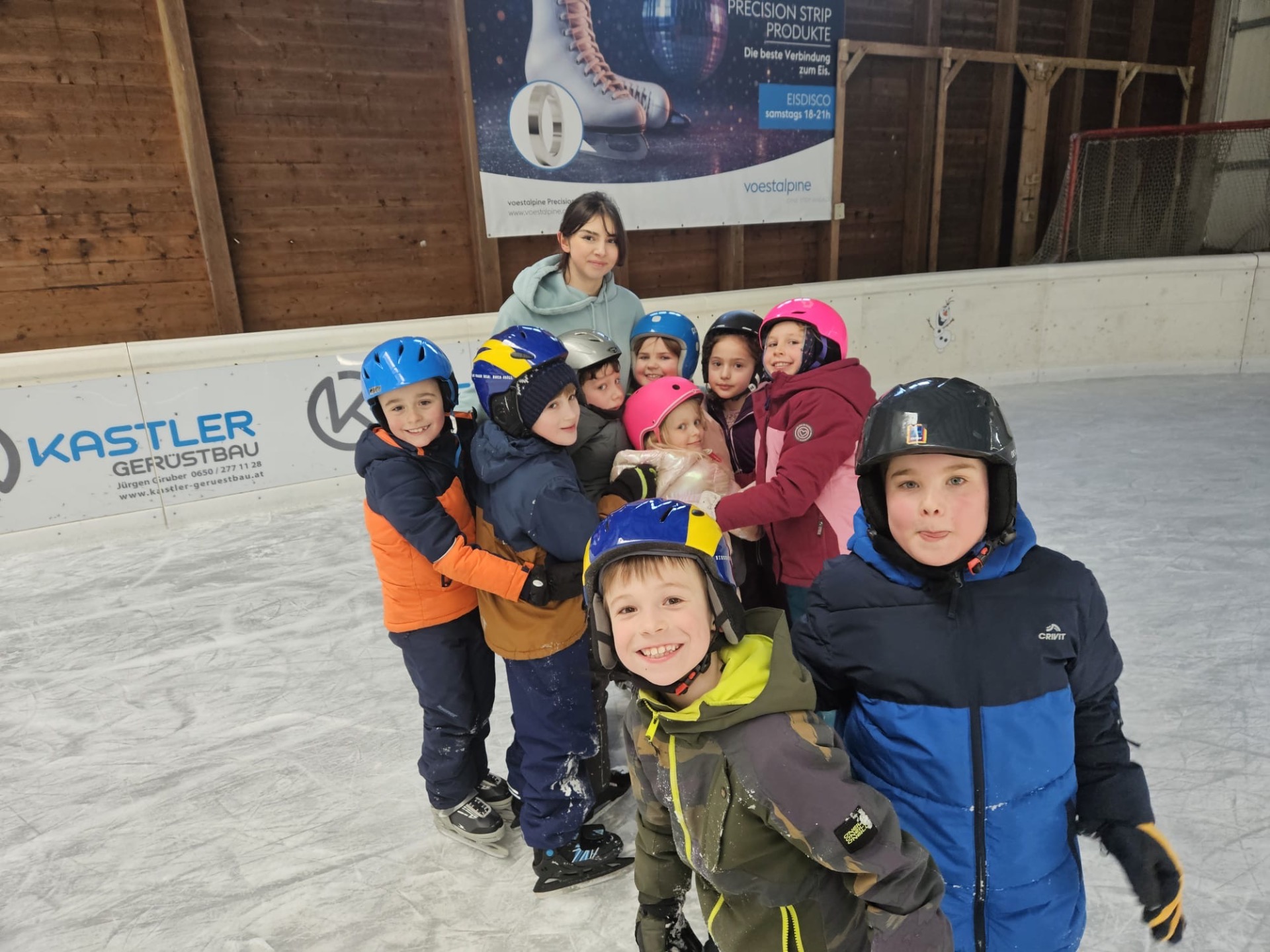 Die 2a am Eislaufplatz Vielen Dank an unsere Praktikantin aus der FS Gleiß, Joana Brüller, die den Kindern tolle Eislauftricks beibrachte.