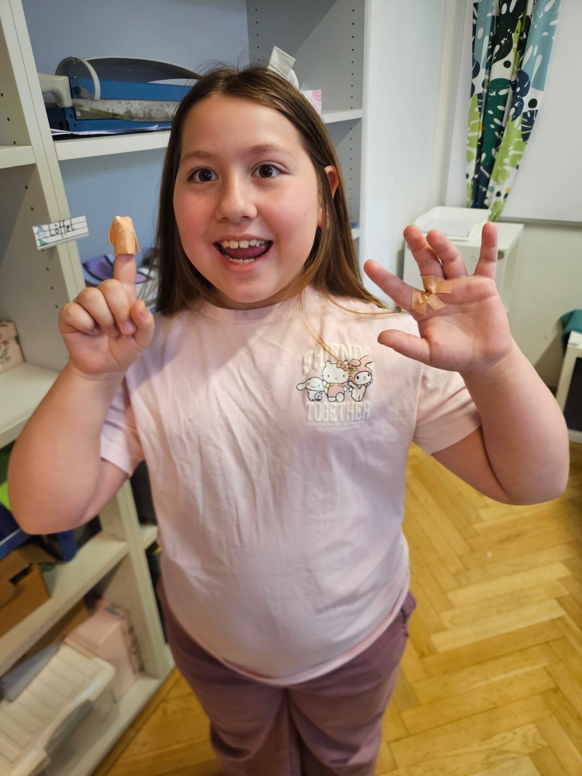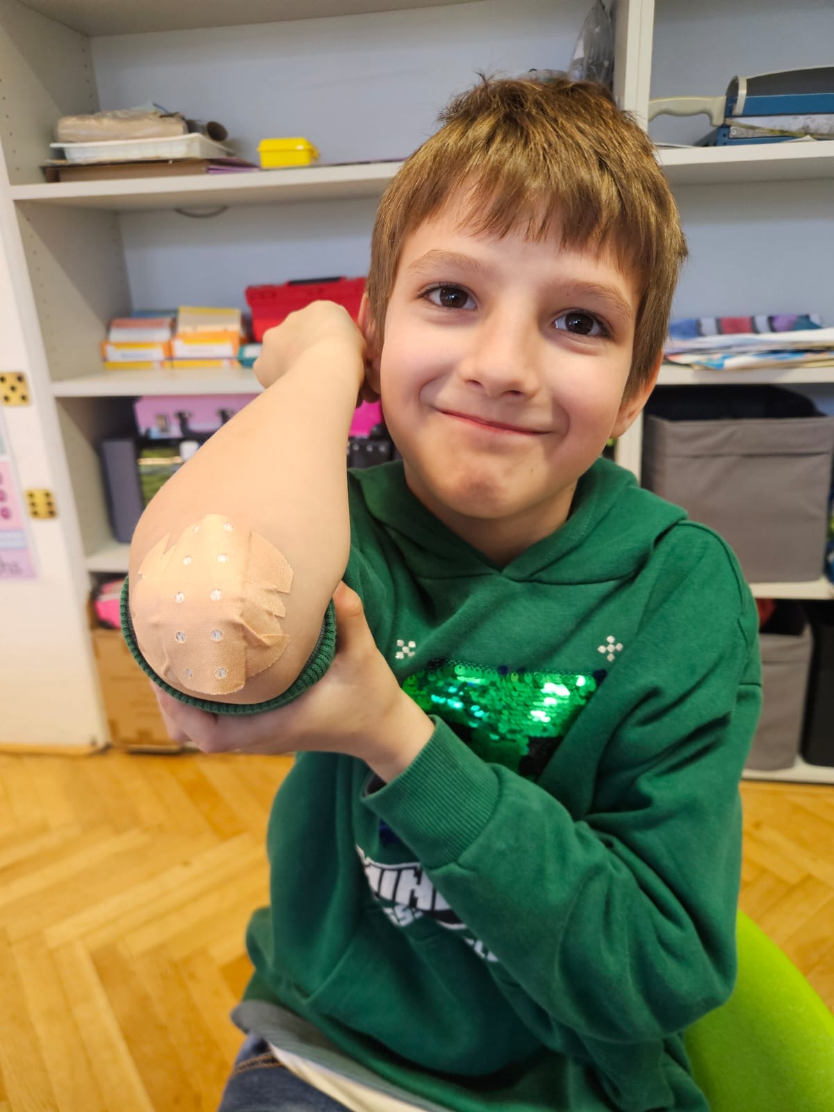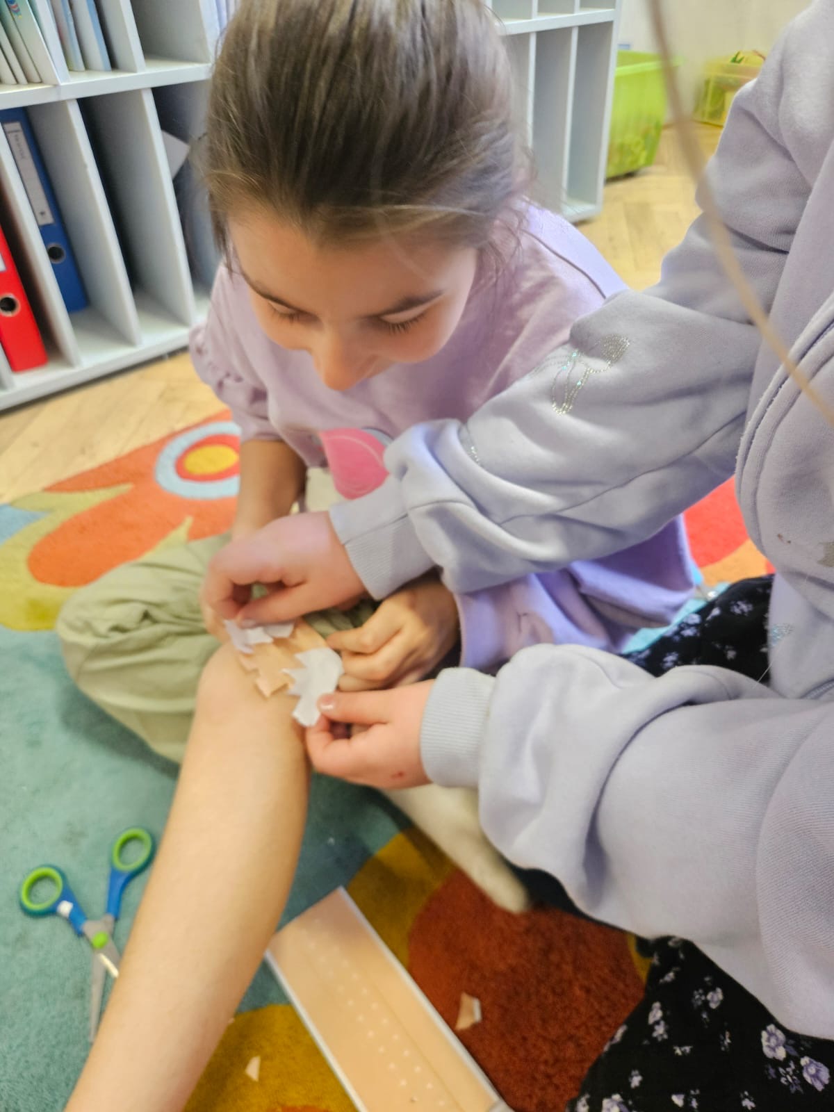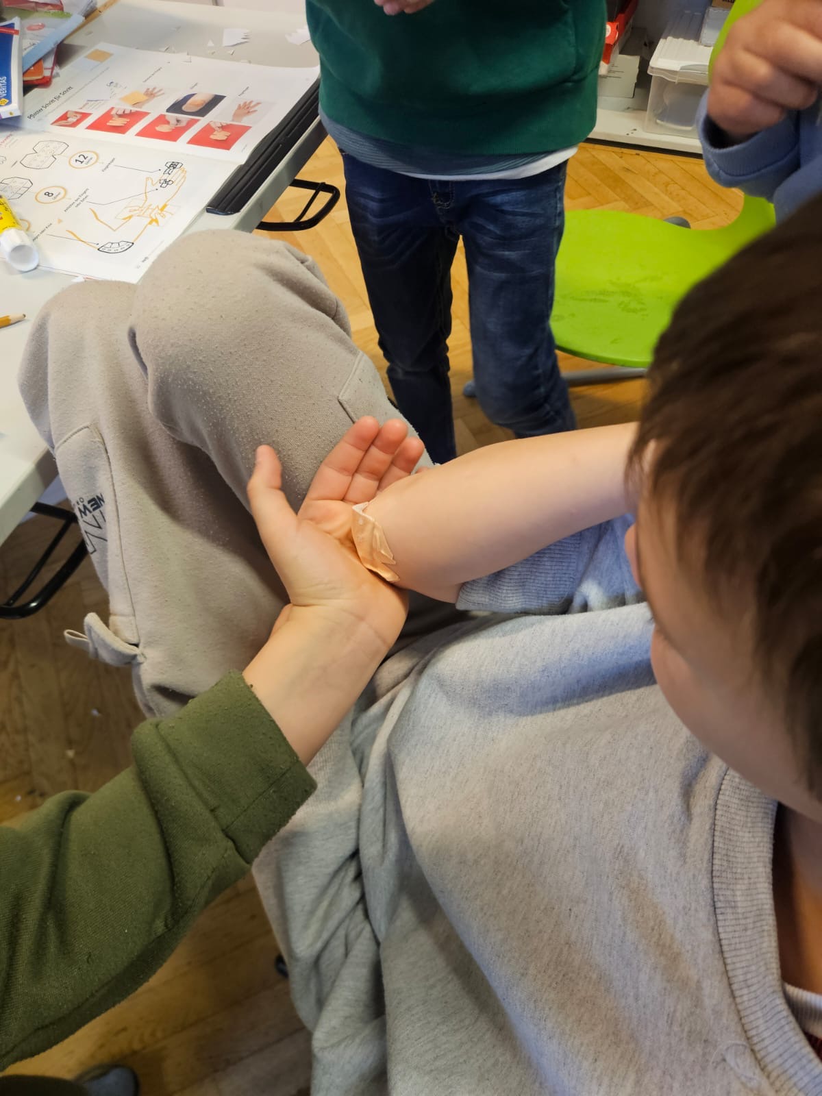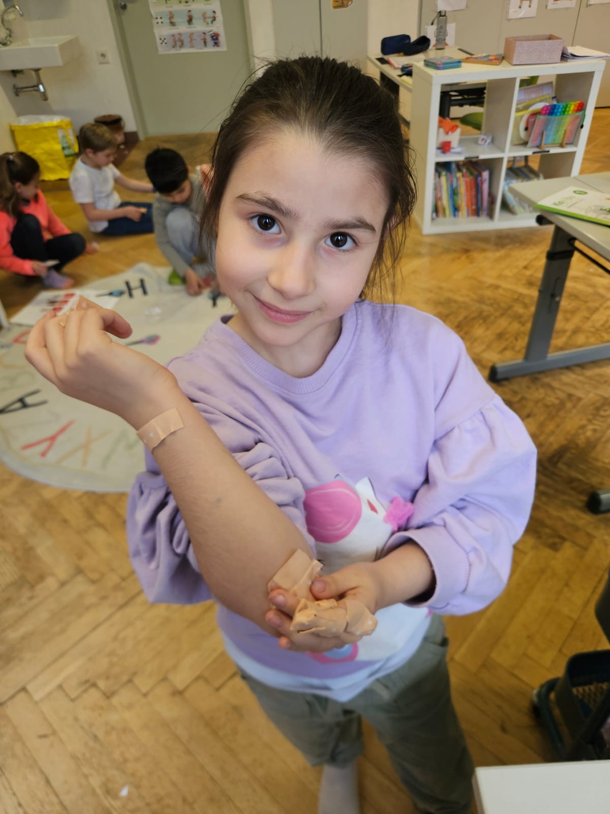 Erste Hilfe Die 1C hat in Sachunterricht das richtige Schneiden und Kleben von Pflastern für Knie/Ellbogen, Fingerkuppe und für zwischen den Fingern gelernt. Dabei durfte selbst ausprobiert und verarztet werden. ☺️