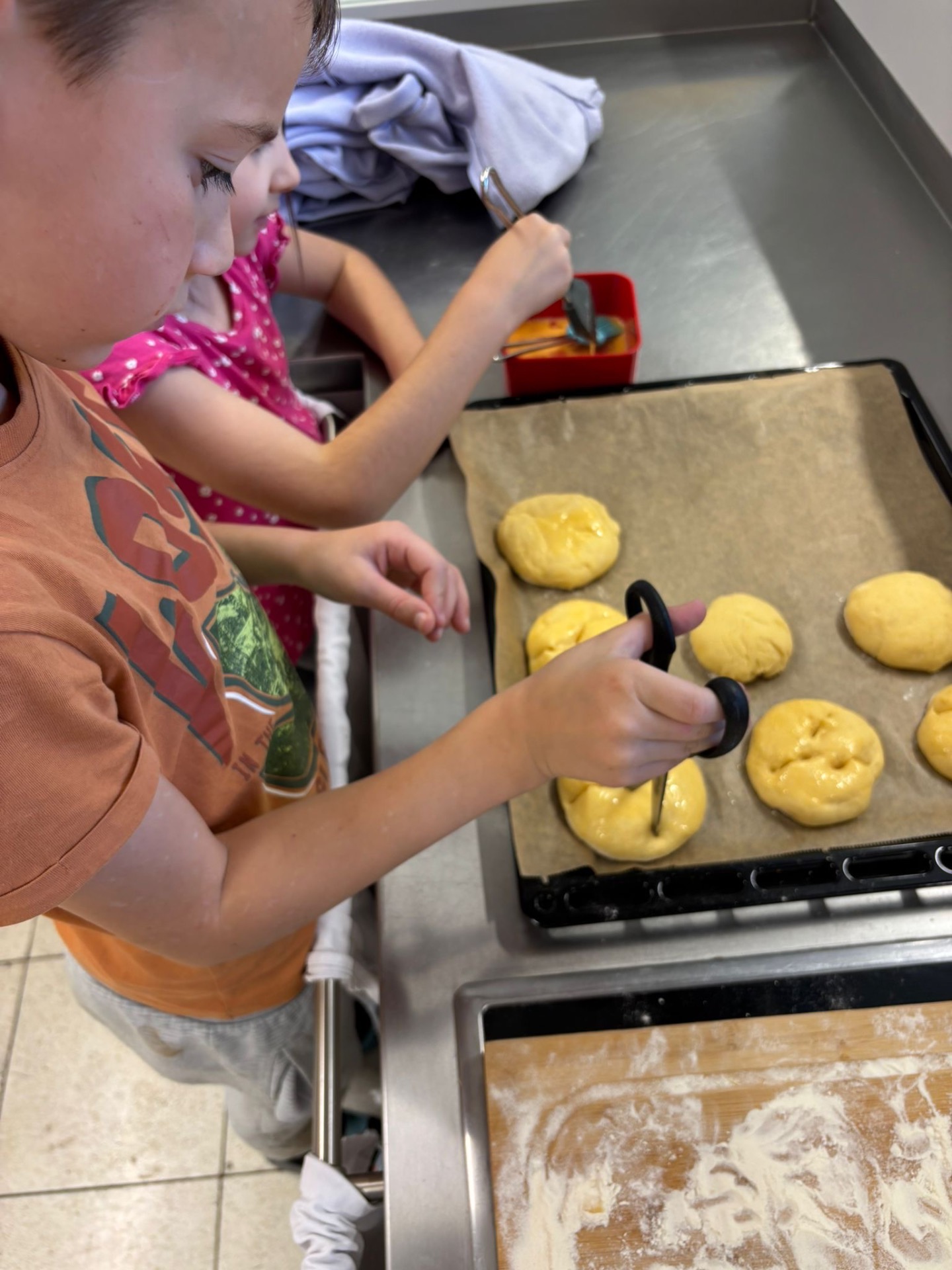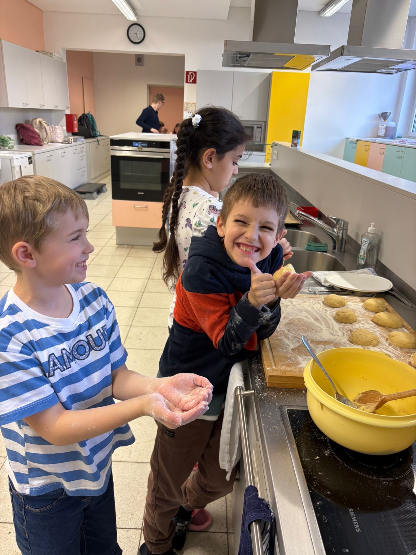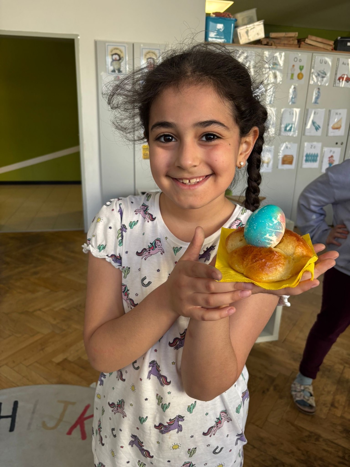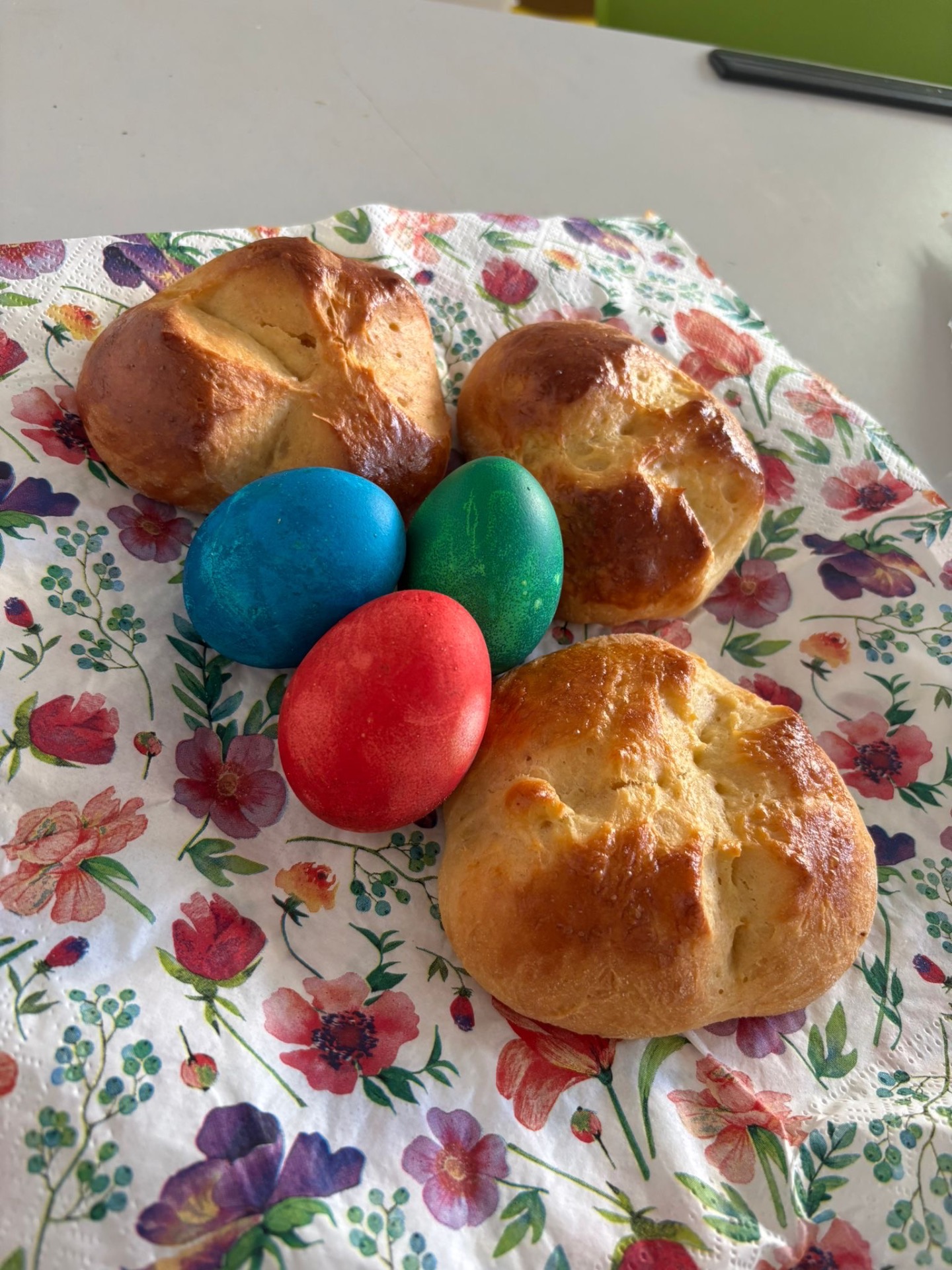 In der Osterwerkstatt Die Zeitklasse 1/2 verwandelte sich am Nachmittag in eine Osterwerkstatt! Es wurden Eier eingefärbt und Osterpinzen gebacken!
