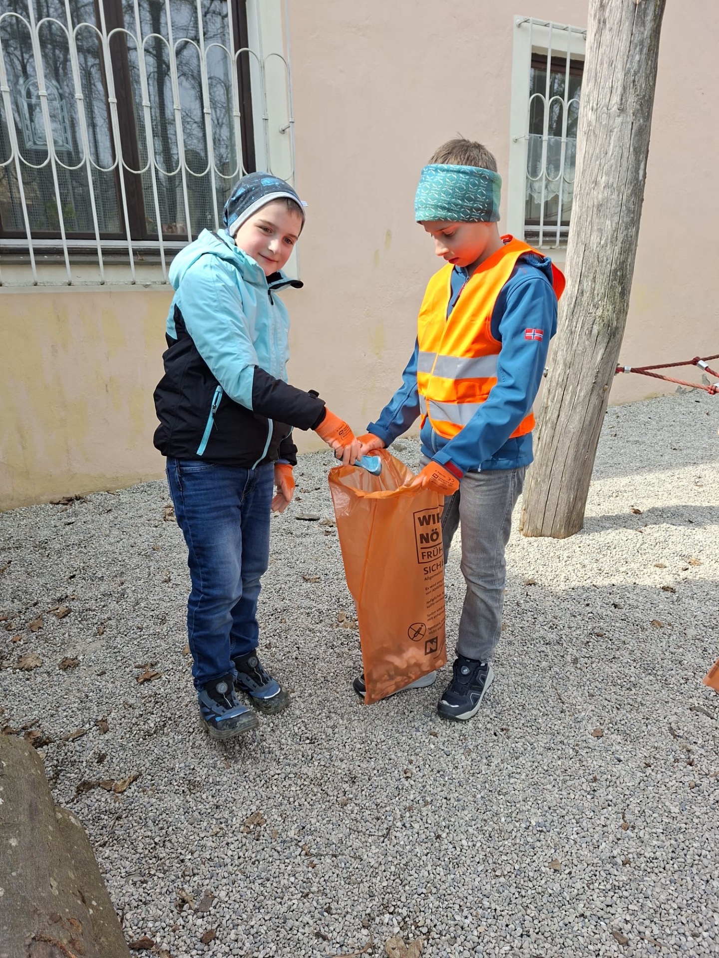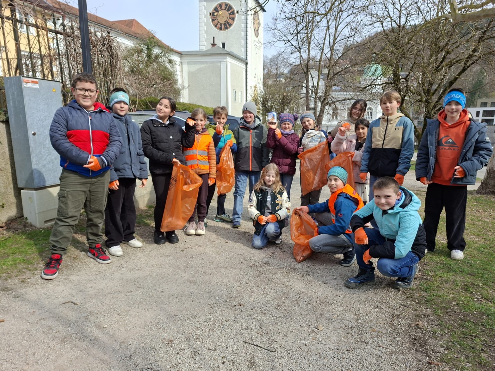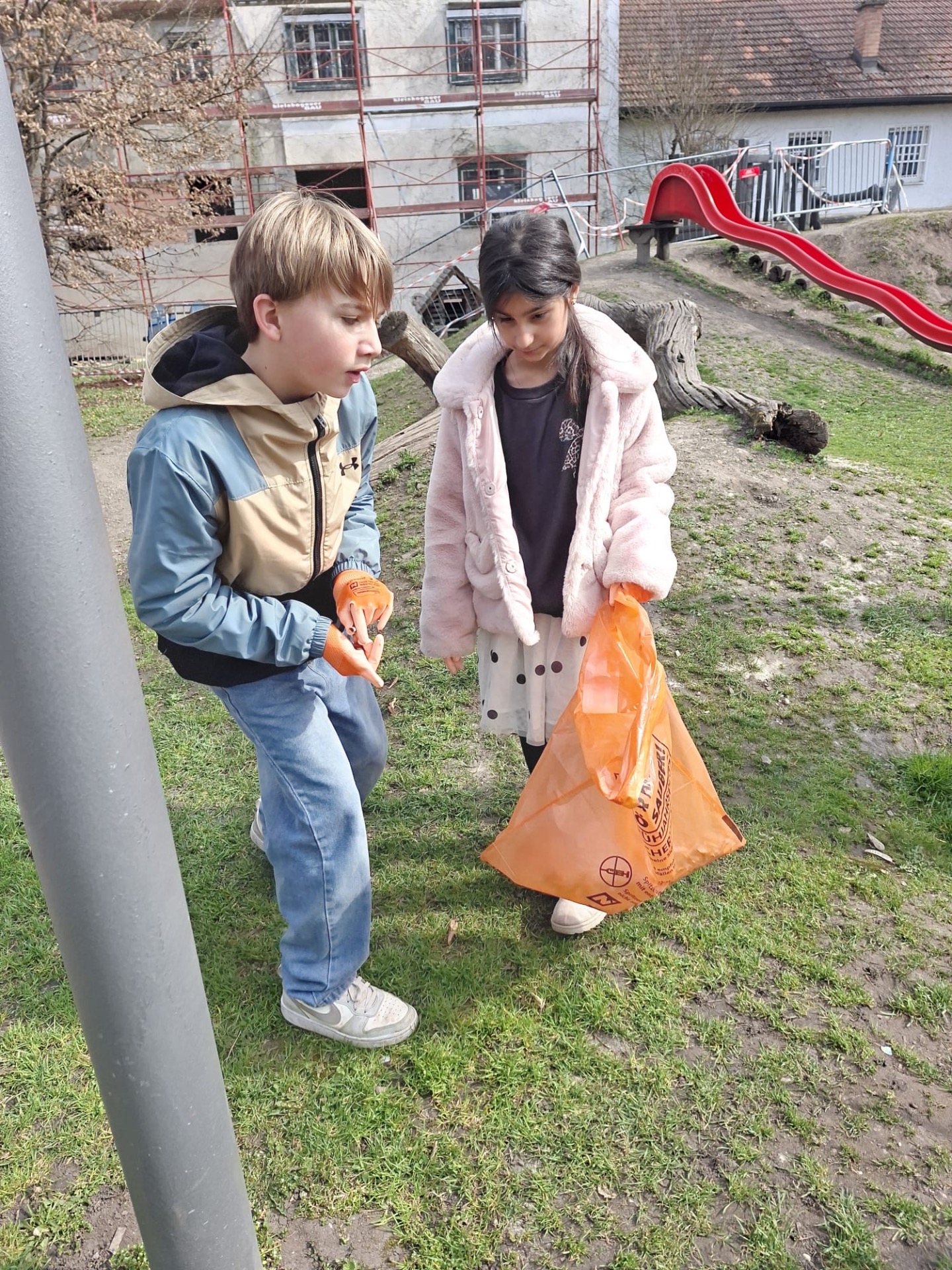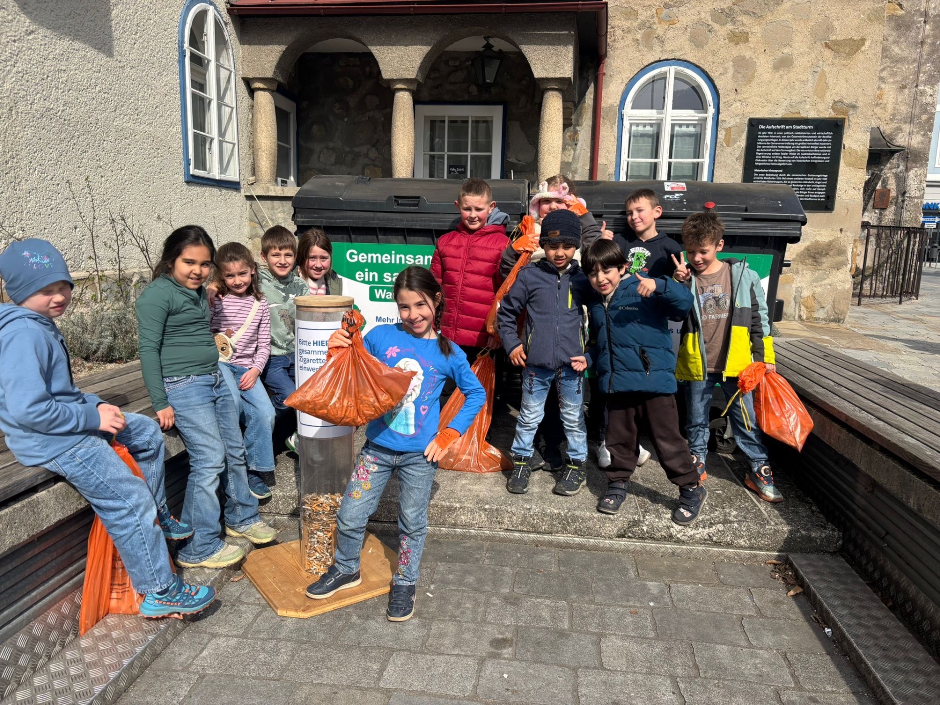 Die Kinder der 4b und der Zeitklasse 1-2 waren sehr erfolgreich Müll sammeln.
