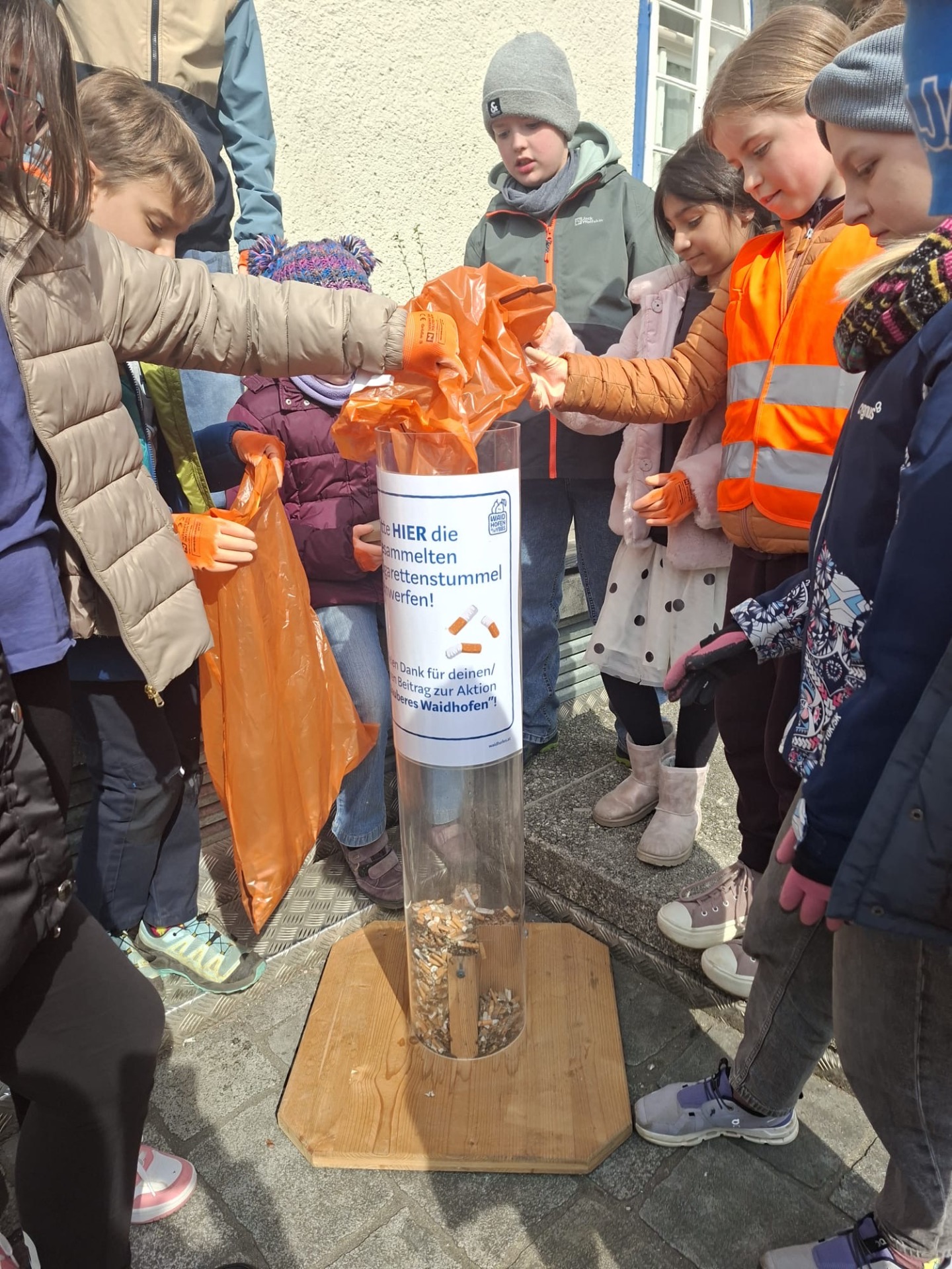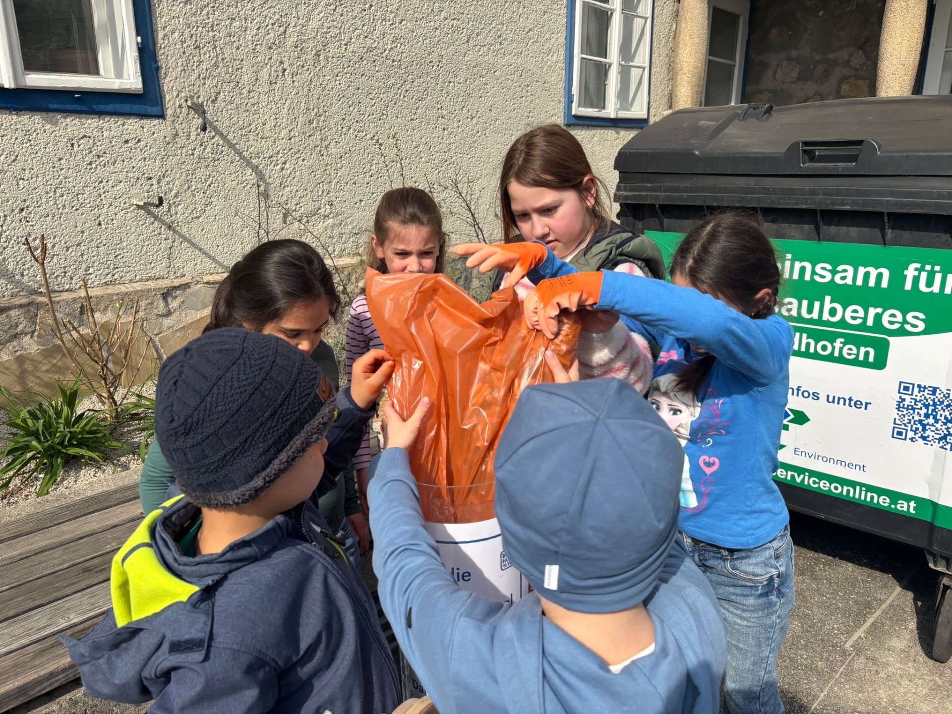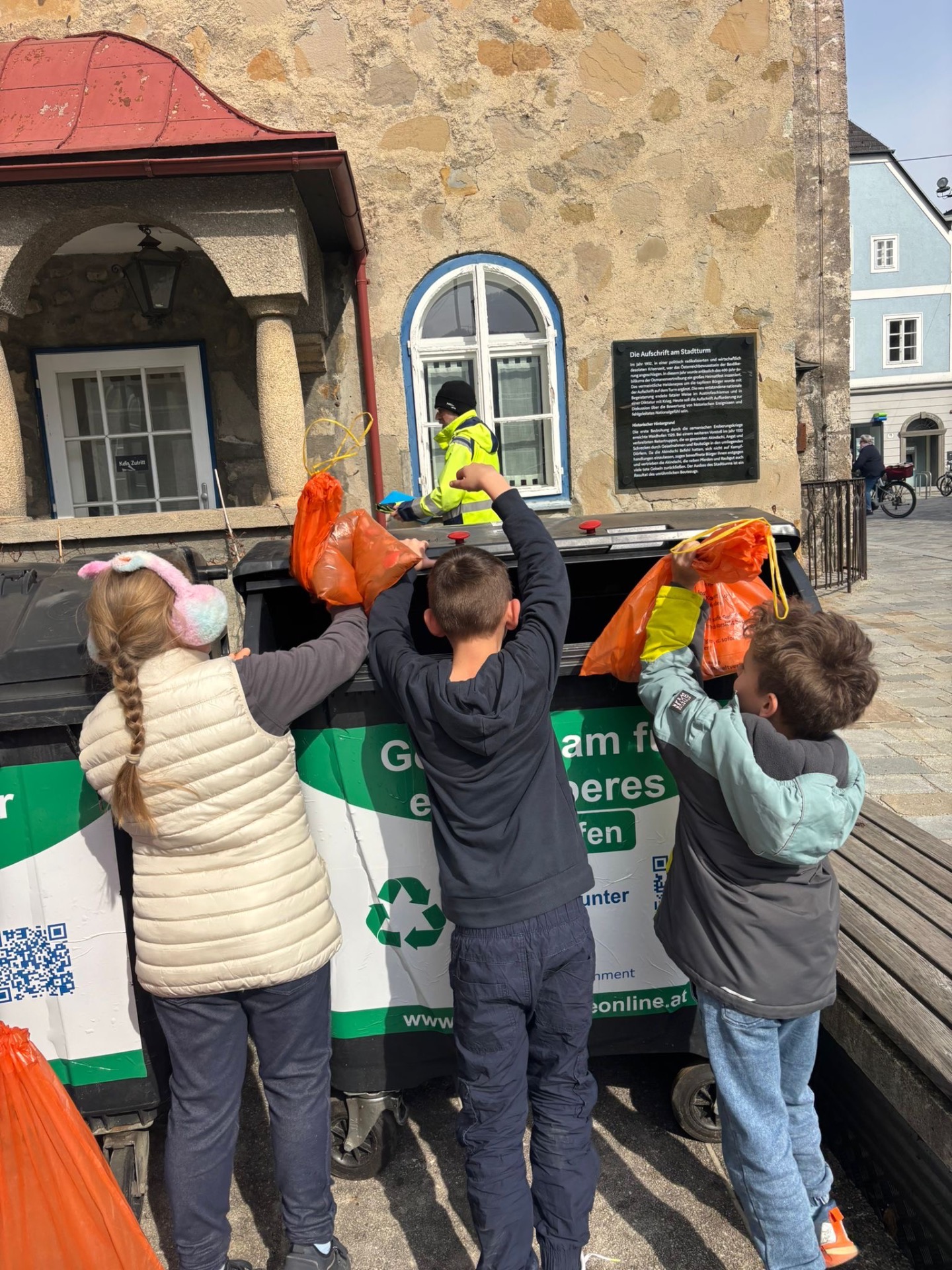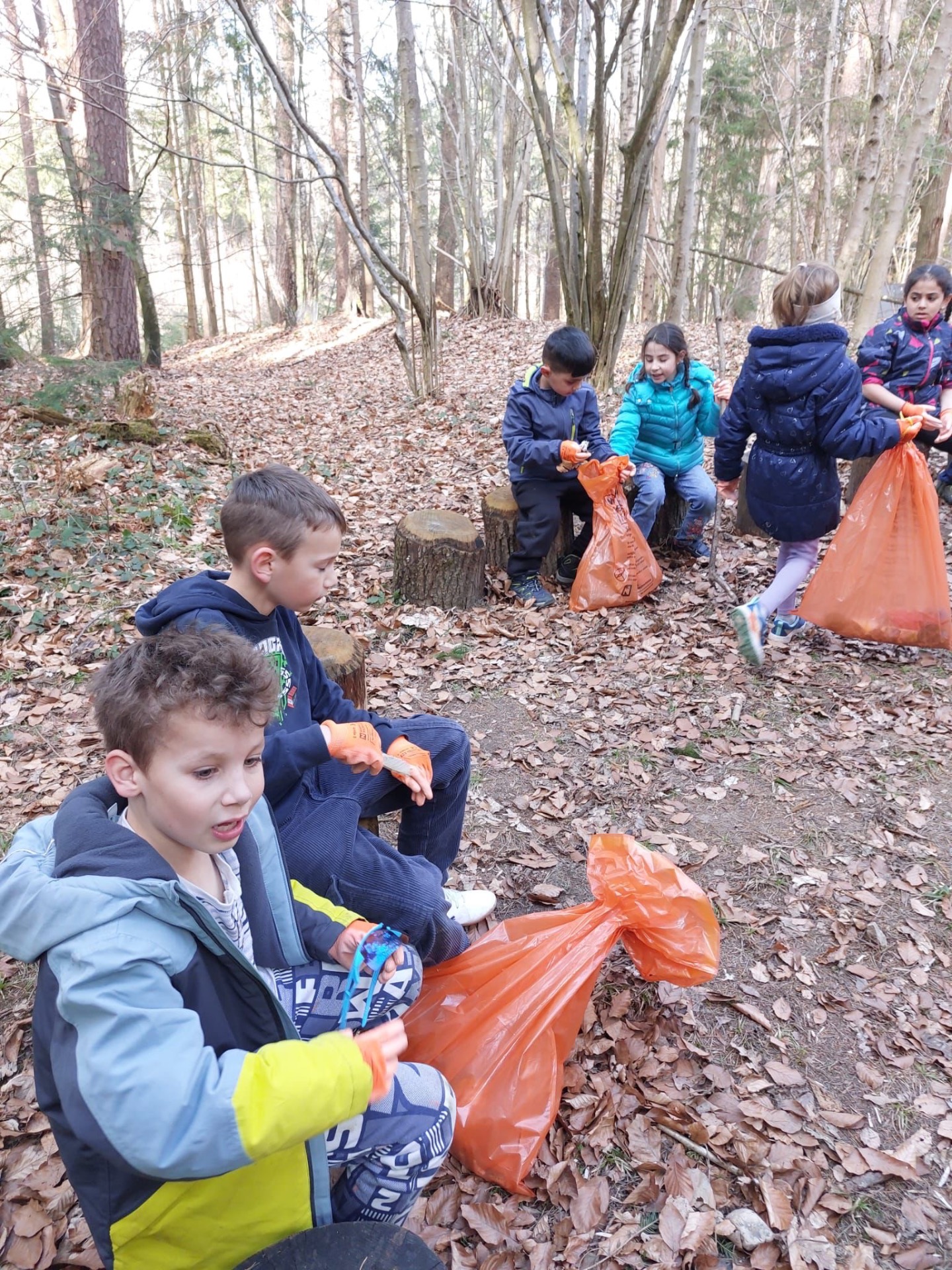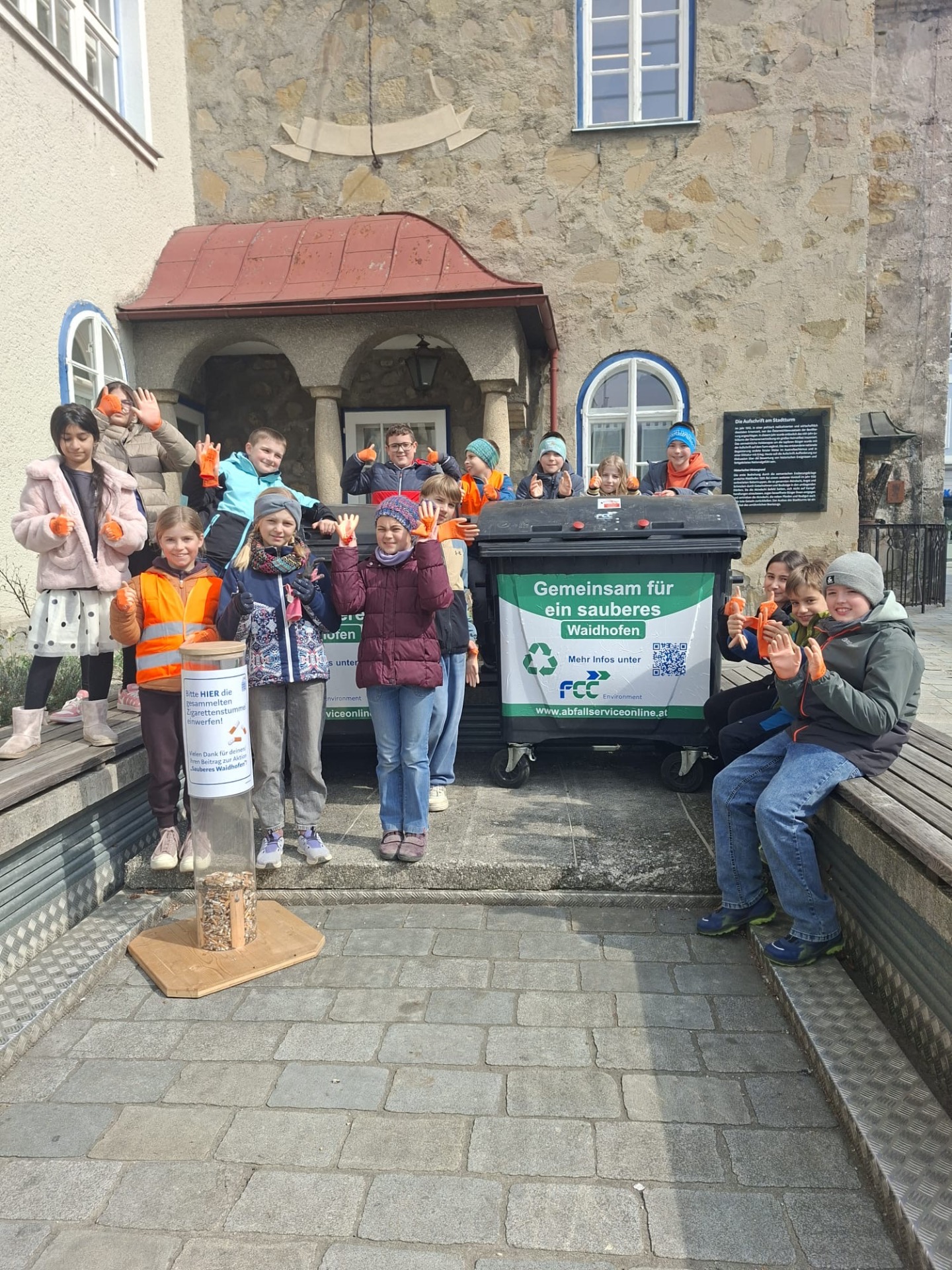 Die Kinder der 4b und der Zeitklasse 1-2 waren sehr erfolgreich Müll sammeln.