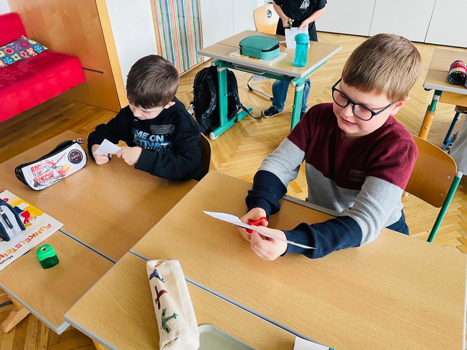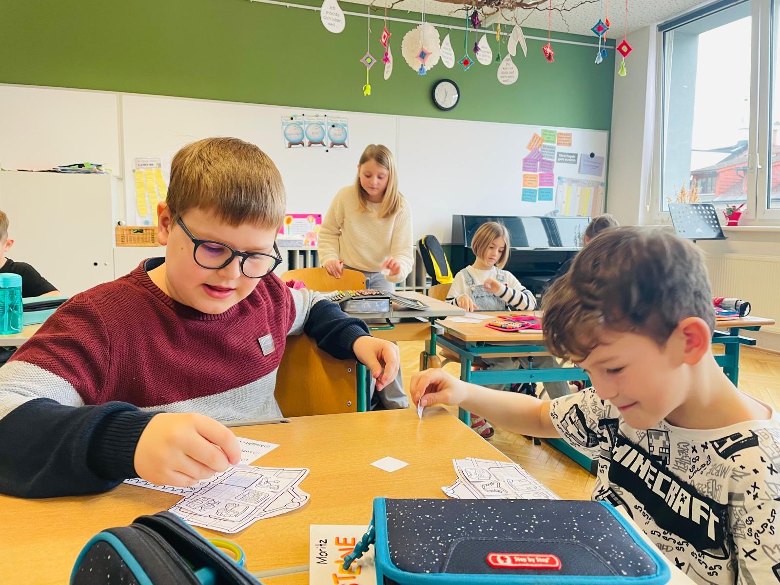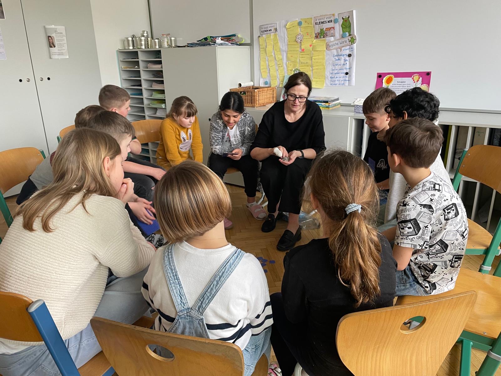 Die Kinder der 3.b beim Englisch-Unterricht mit Jacky Gall.