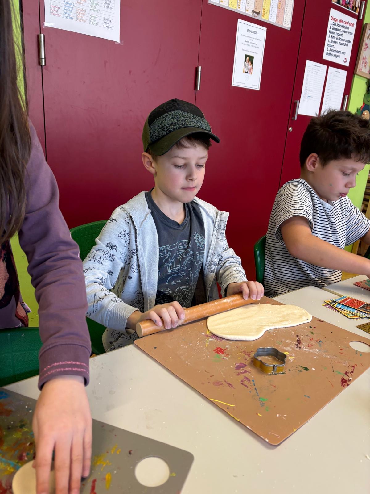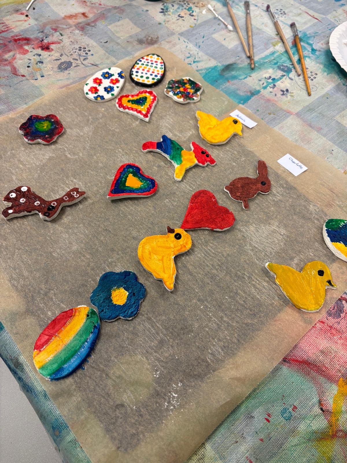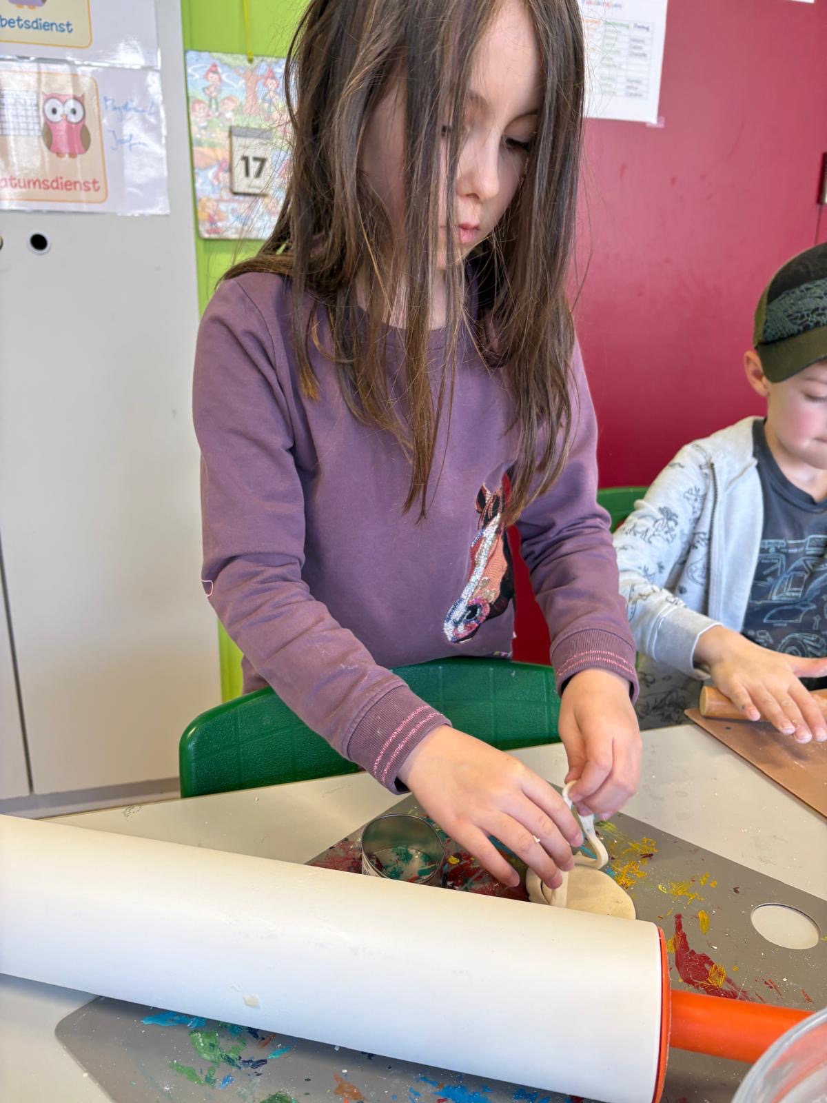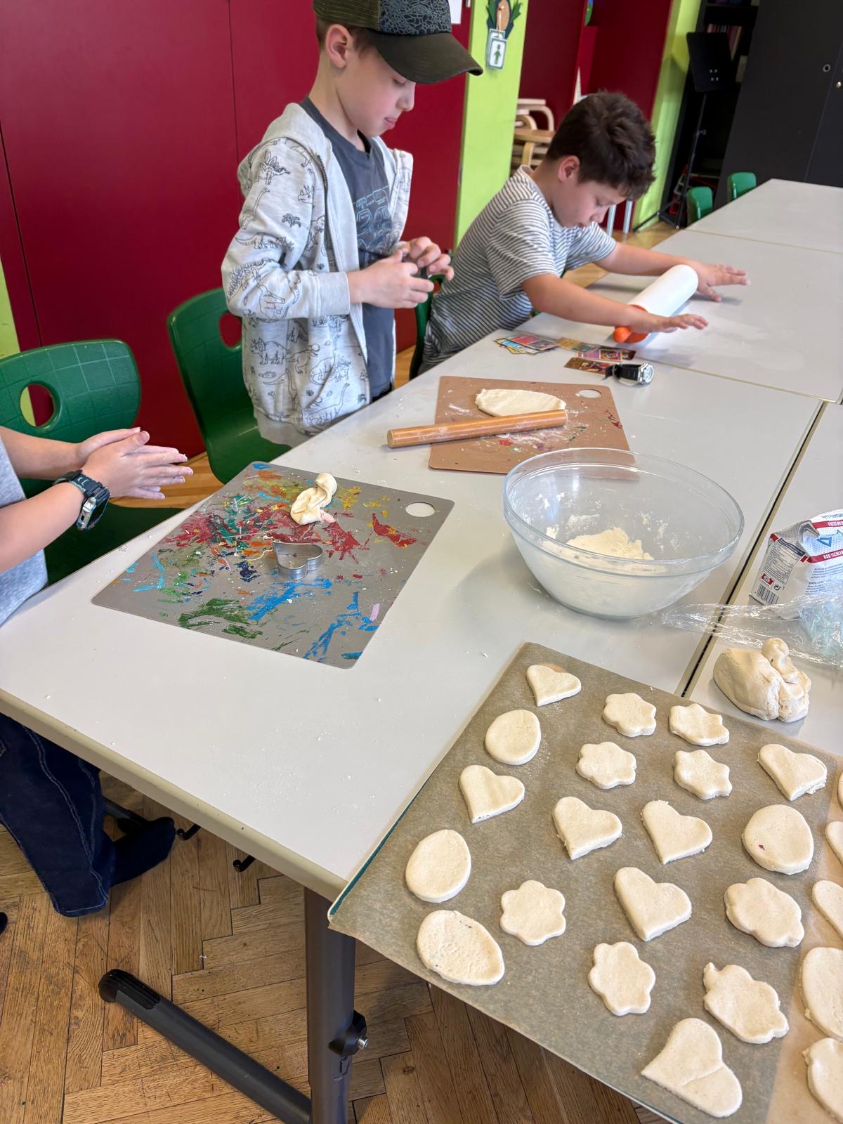 Osterdeko In der Nachmittagsbetreuung wurden aus selbstgemachtem Salzteig tolle Anhänger für den Osterstrauch gefertigt und kreativ bemalt.
