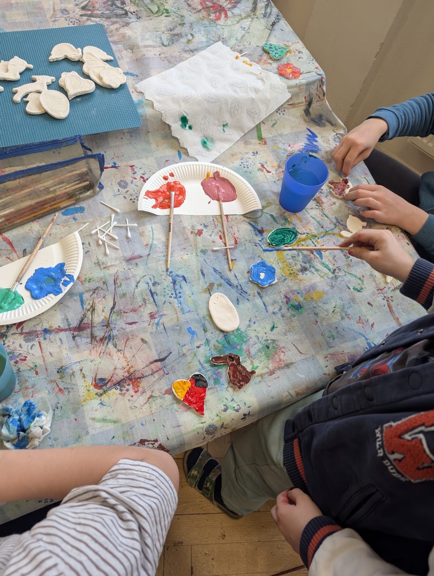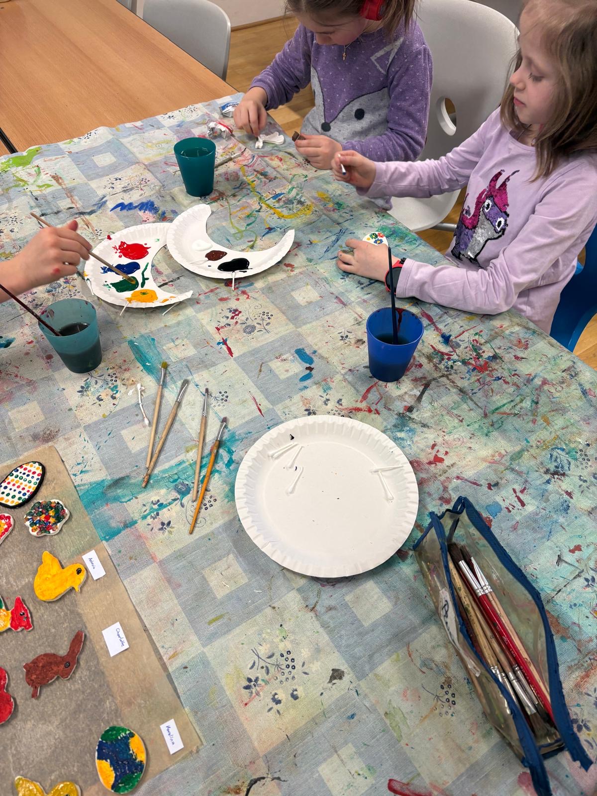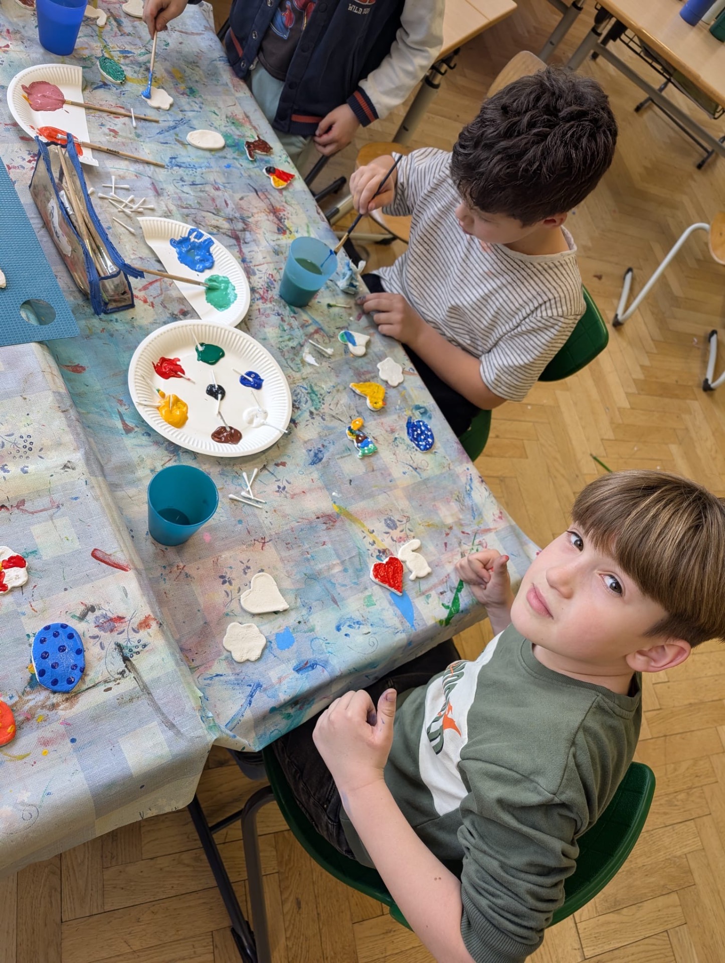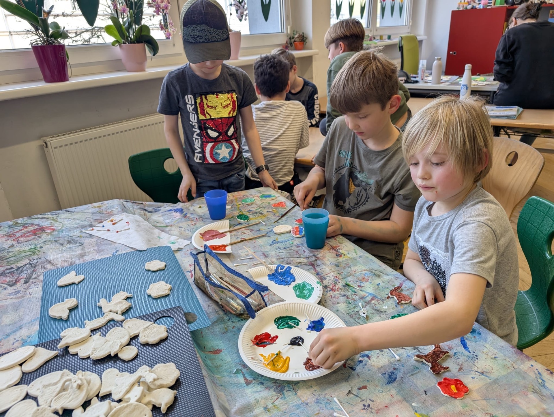 Osterdeko In der Nachmittagsbetreuung wurden aus selbstgemachtem Salzteig tolle Anhänger für den Osterstrauch gefertigt und kreativ bemalt.